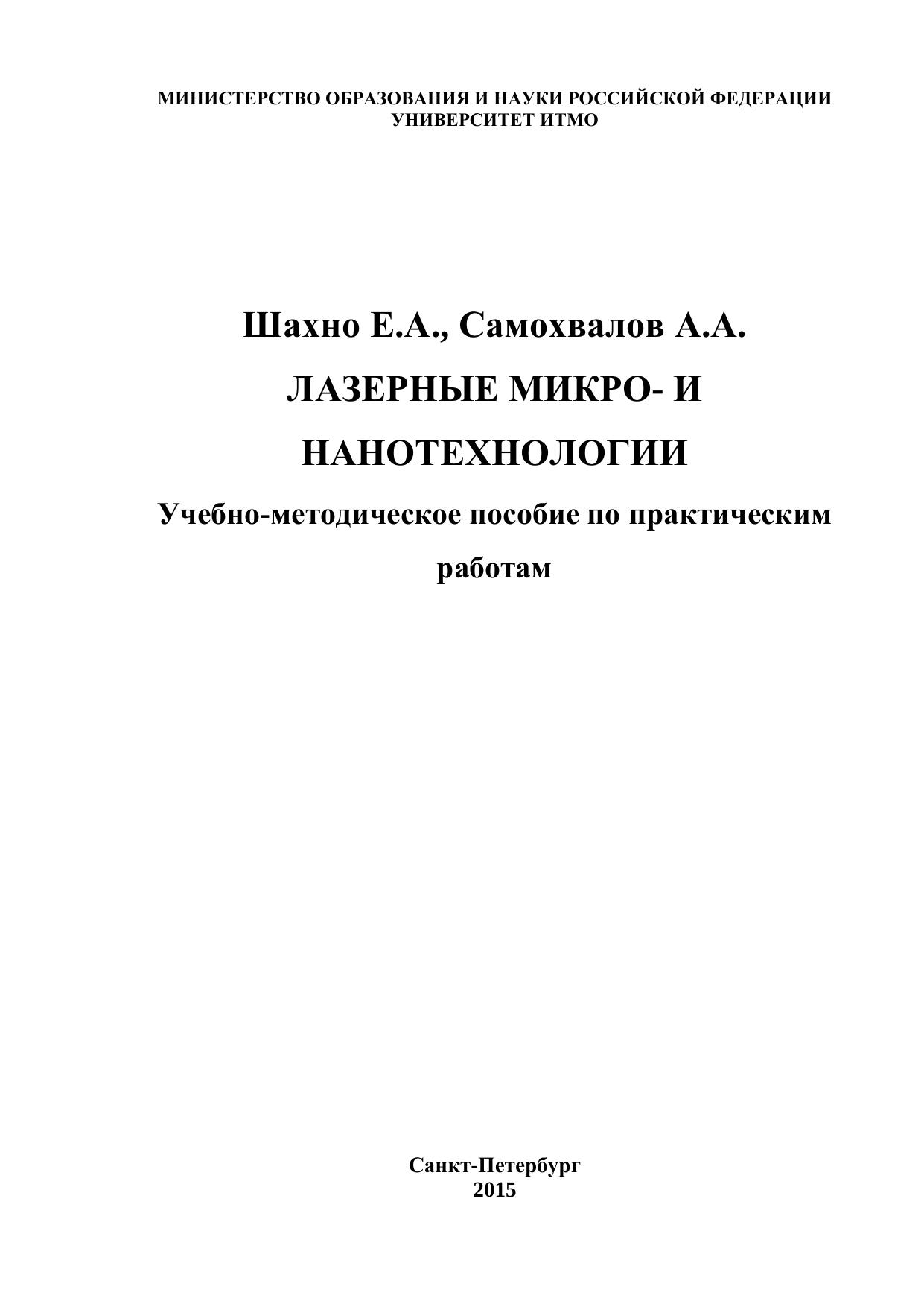 Лазерные микро- и нанотехнологии. Учебно-методическое пособие по практическим работам для студентов