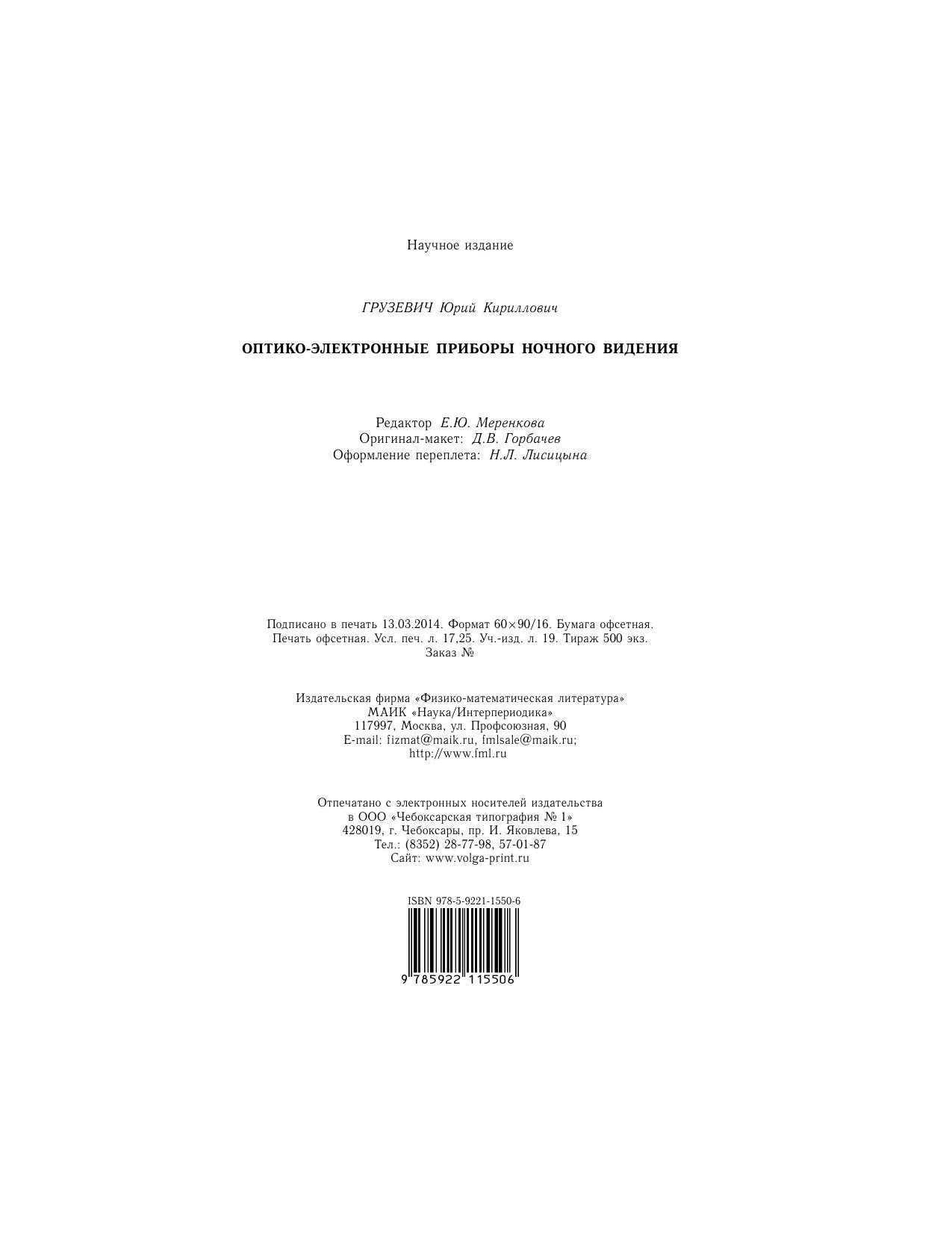 Книга предназначена научным и инженерно-техническим работникам, аспирантам и студентам старших курсов, специализирующимся в области техники ночного видения.