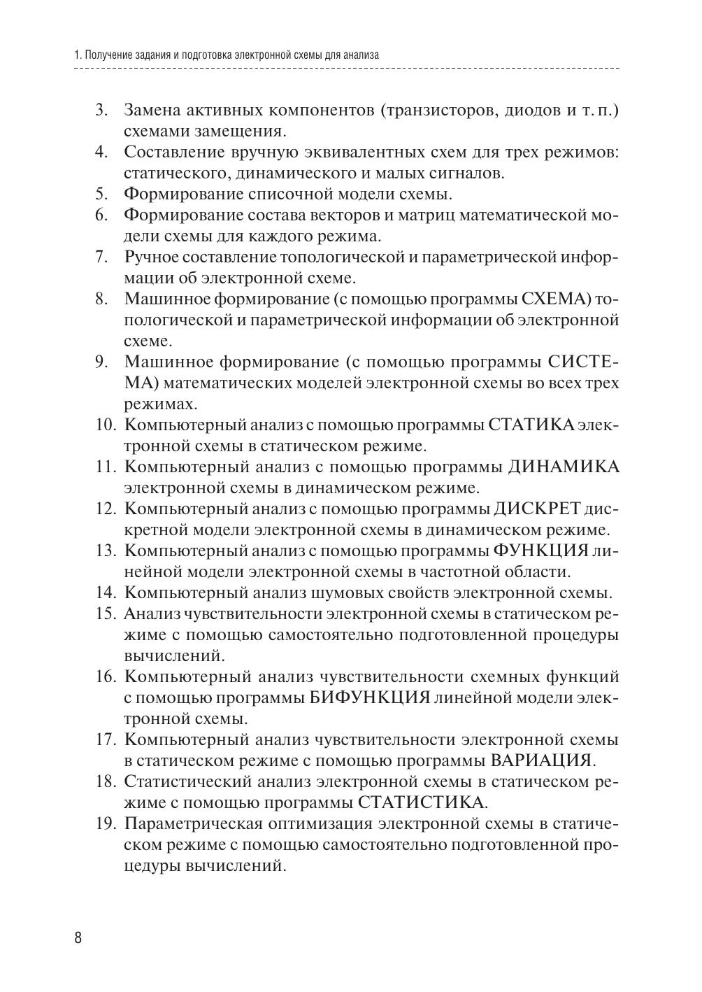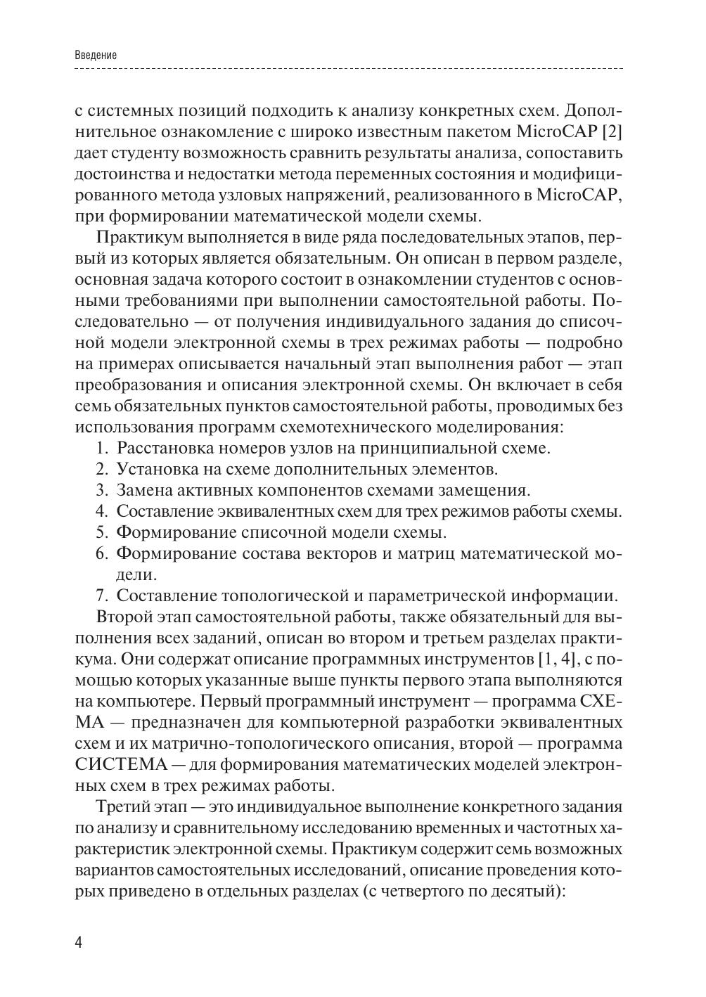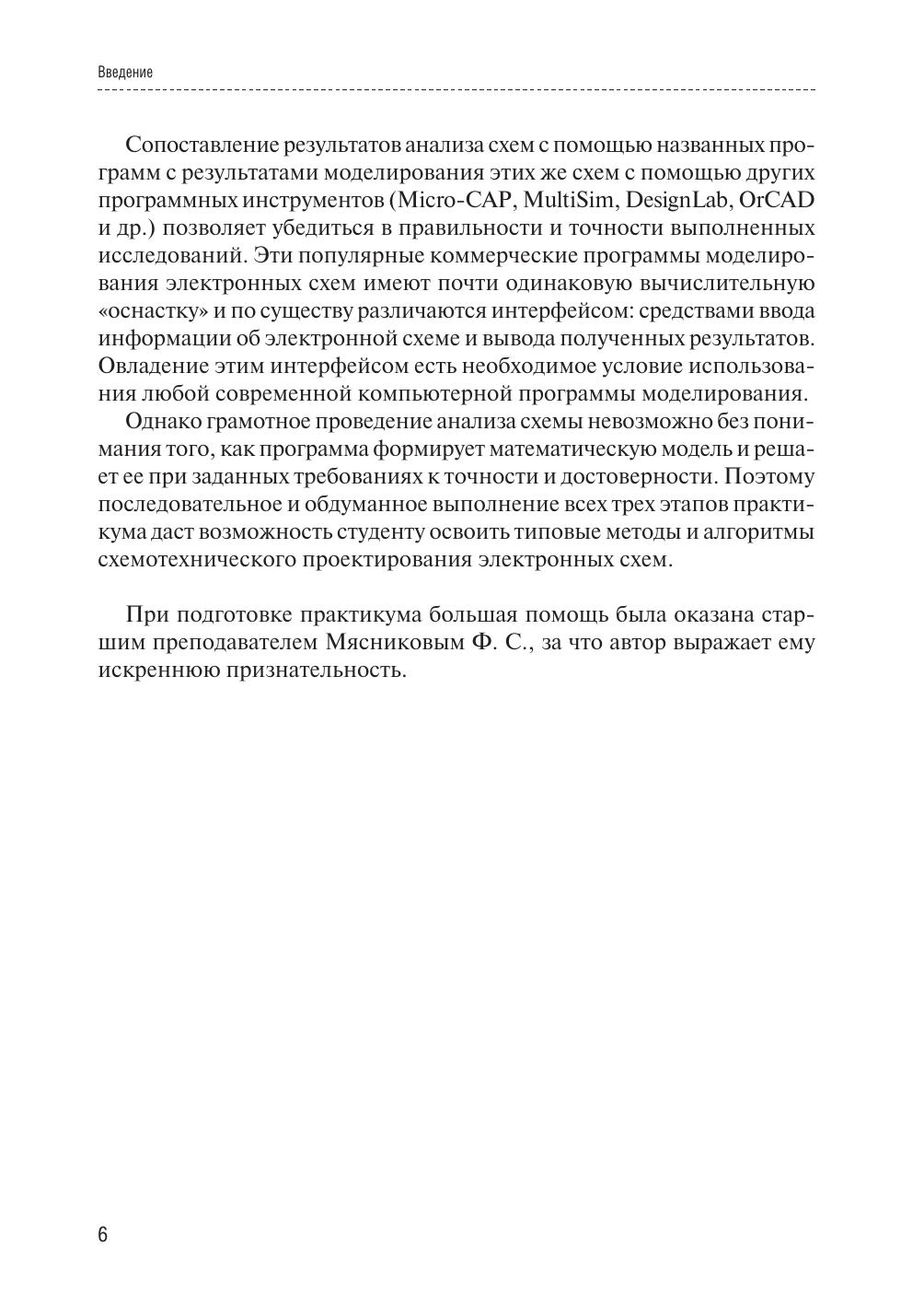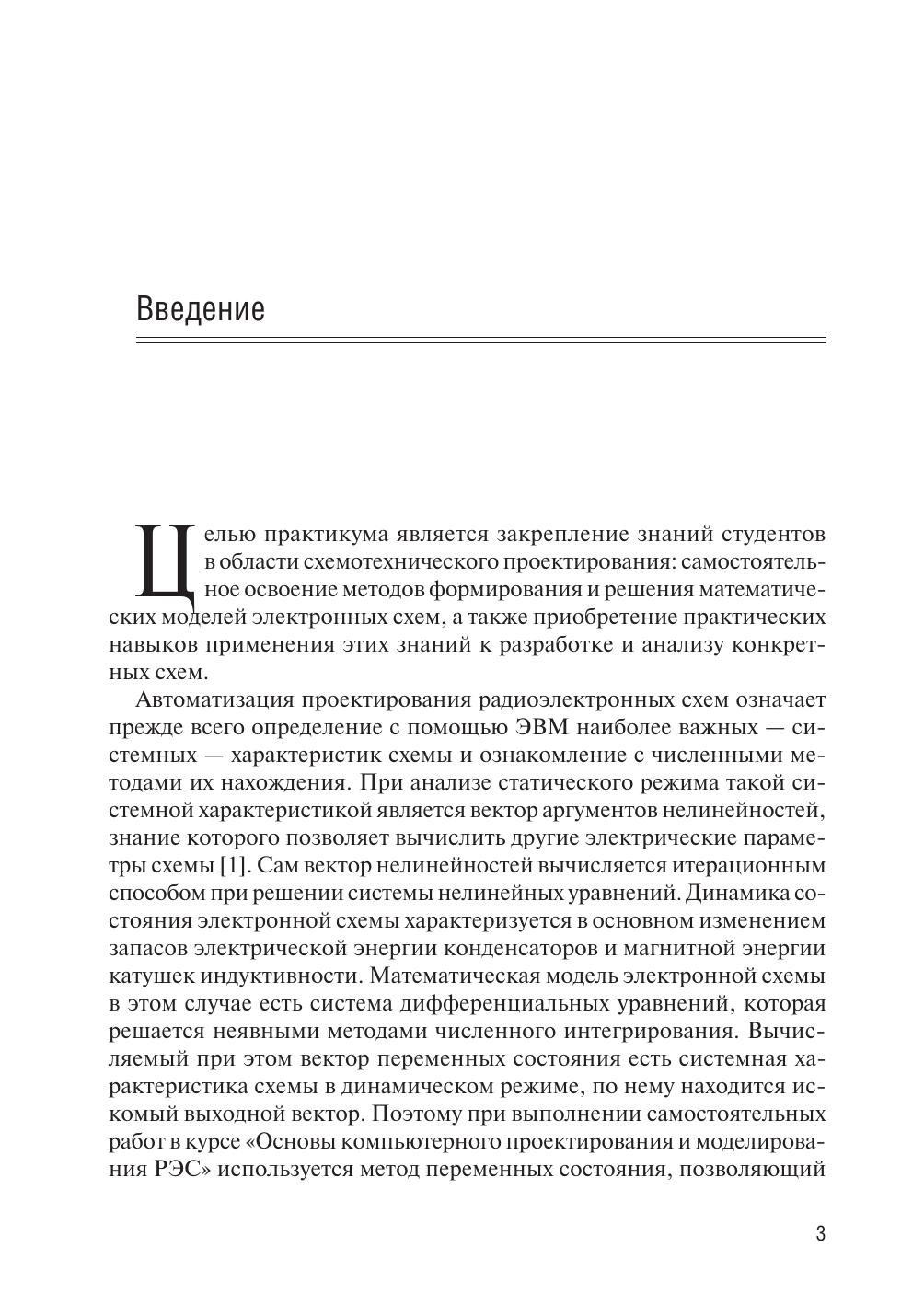 Практикум содержит материалы по организации самостоятельной работы студентов по моделированию электронных схем с помощью пакета прикладных программ АНАЛИЗ. Описание интерфейса новой версии этого пакета, реализованного в среде системы моделирования MATLAB, сопровождается примерами анализа конкретных схем. Приведены указания по использованию пакета схемотехнического моделирования Micro-Cap для сравнения и проверки полученных численных результатов. Работа содержит также набор принципиальных схем для анализа, требования к составлению отчетов и контрольные вопросы. Практикум предназначен для бакалавров и специалистов направления «Радиотехника», а также для студентов и аспирантов, изучающих вопросы компьютерного моделирования и разработки электронных средств.