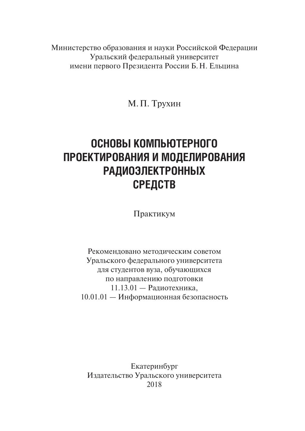 Основы компьютерного проектирования и моделирования радиоэлектронных средств: практикум