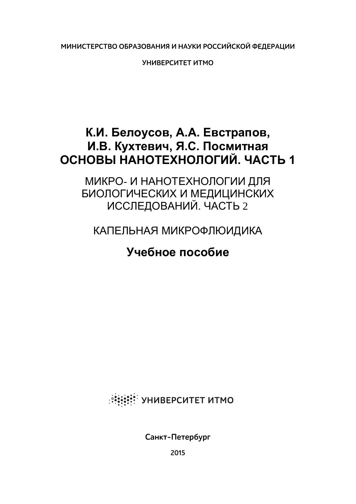 Основы нанотехнологий. часть 1 Микро- и нанотехнологии для биологических и медицинских исследований. часть 2. Капельная микрофлюидика