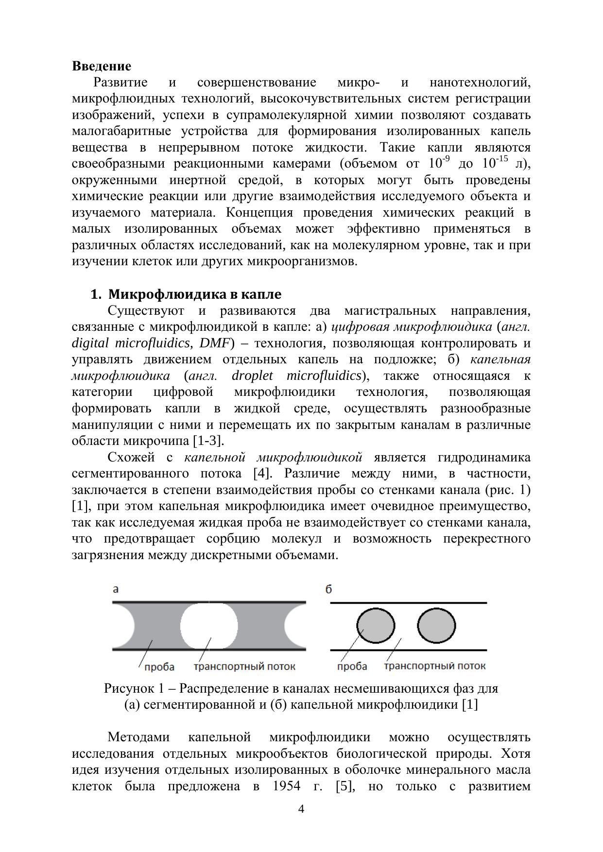 Развитие и совершенствование микро- и нанотехнологий, микрофлюидных технологий, высокочувствительных систем регистрации изображений, успехи в супрамолекулярной химии позволяют создавать малогабаритные устройства для формирования изолированных капель вещества в непрерывном потоке жидкости. Такие капли являются своеобразными реакционными камерами (объемом от 10 -9 до 10 -15 л), окруженными инертной средой, в которых могут быть проведены химические реакции или другие взаимодействия исследуемого объекта и изучаемого материала. Концепция проведения химических реакций в малых изолированных объемах может эффективно применяться в различных областях исследований, как на молекулярном уровне, так и при изучении клеток или других микроорганизмов.