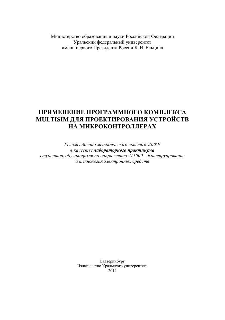 Изложены теория и практическое решение основных вопросов, связанных с проектированием устройств на микроконтроллерах семейства mcs-51/52 с помощью программного комплекса Multisim-10. Предназначается для студентов обучабщихся по направлению подготовки «Проектирование и технология электронно-вычислительных средств» при выполнении цикла лабораторных работ по дисциплине «Центральные и периферийные устройства ЭВС» и курсовом проектировании.