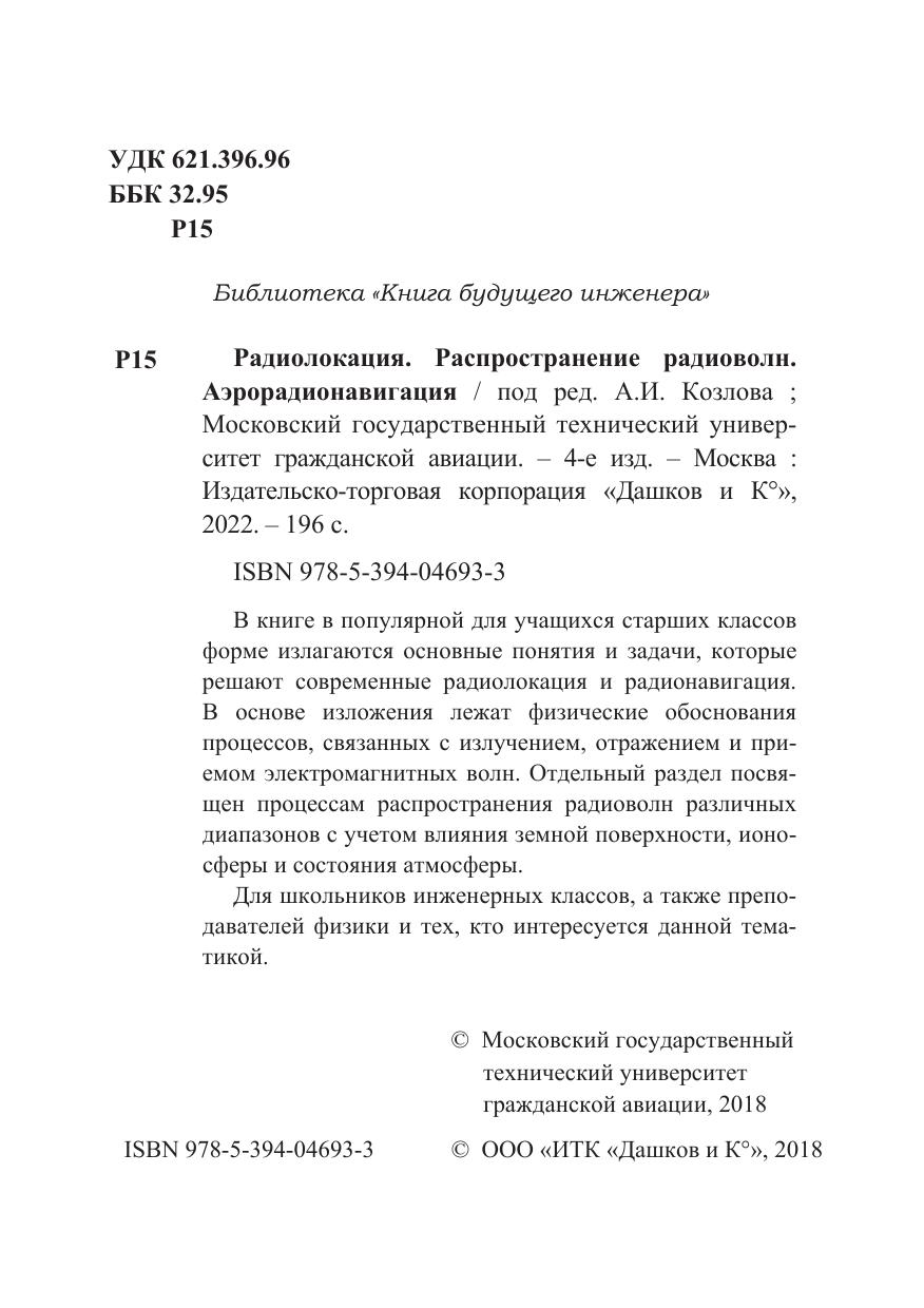 В книге в популярном для учащихся старших классов форме излагаются основные понятия и задачи, которые решают современные радиолокация и радионавигация. В основе изложения лежат физические обоснования процессов, связанных с излучением, отражением и приемом электромагнитных волн. Отдельный раздел посвящен процессам распространения радиоволн различных диапазонов с учетом влияния земной поверхности, ионосферы и состояния атмосферы.