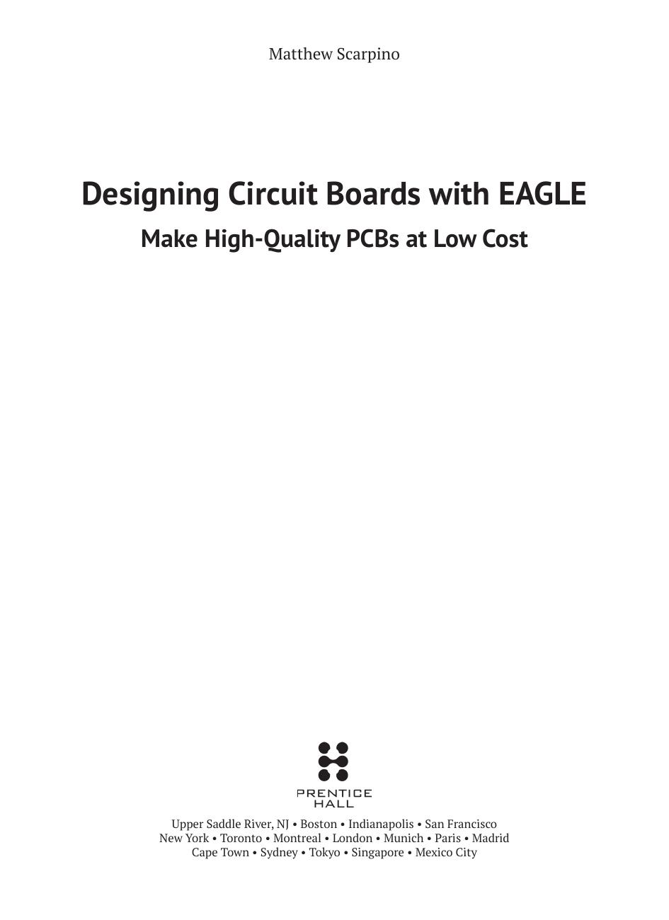 Книга известного американского специалиста посвящена пакету программ для разработки печатных плат EAGLE. Автор не просто показывает все особенности и возможности программы, он освещает технологические основы производства печатных плат и представляет способы и оборудование для этого.