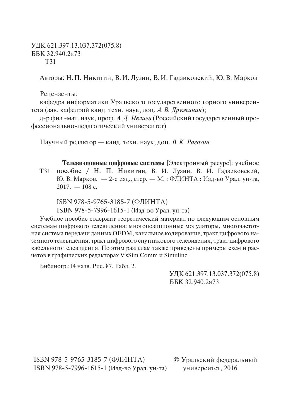 Учебное пособие содержит теоретический материал по следующим основным системам цифрового телевидения: многопозиционные модуляторы, многочастотная система передачи данных OFDM, канальное кодирование, тракт цифрового наземного телевидения, тракт цифрового спутникового телевидения, тракт цифрового кабельного телевидения. По этим разделам также приведены примеры схем и расчетов в графических редакторах VisSim Comm и Simulinc.