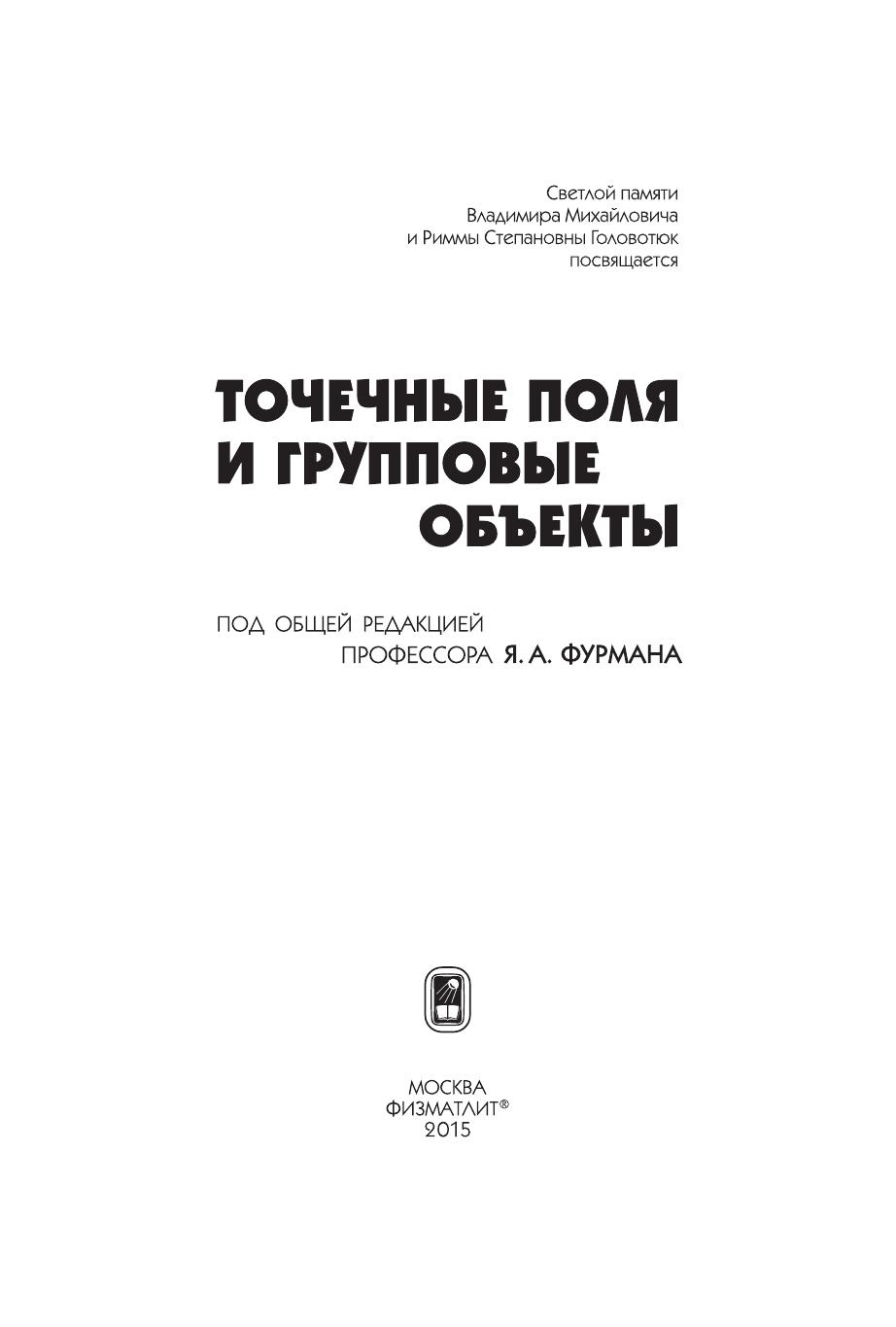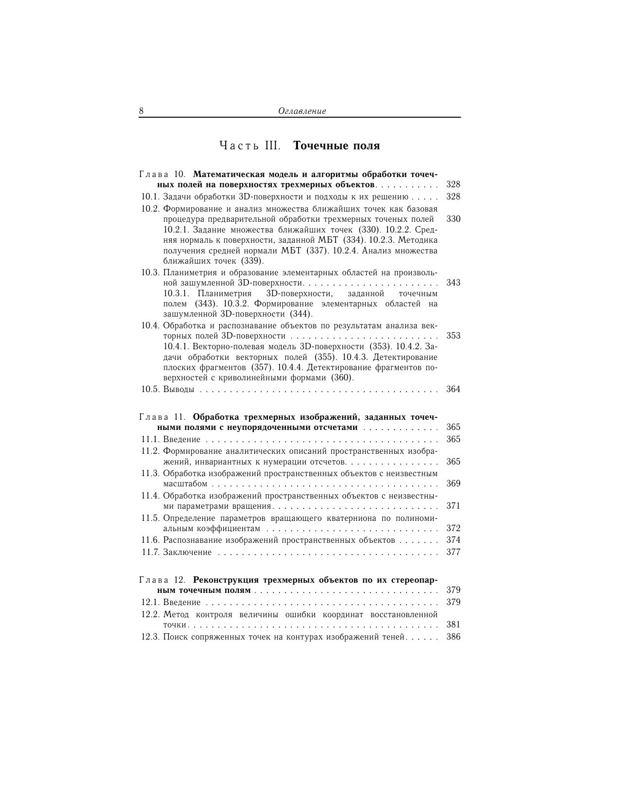 Изложены основы обработки изображений, представленных плоскими и пространственно расположенными точечными структурами в виде полей и локализованных групп. Описаны математические модели подобных структур, исследованы их свойства в условиях шума и априорной неопределенности неинформативных параметров. Рассмотрено решение задач, связанных с упорядочением и сегментацией точечных полей и групповых точечных объектов.