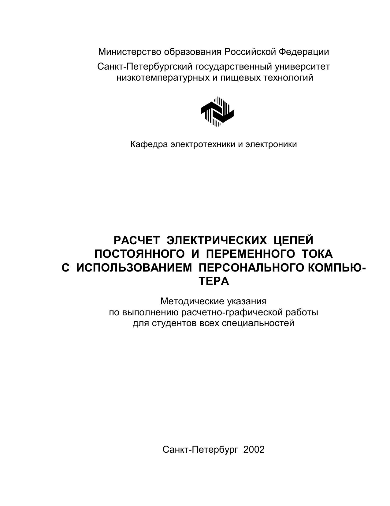 Расчет электрических цепей постоянного и переменного тока с использованием персонального компьютера: Метод. указания по выполнению расчетно-графической работы для студентов всех специальностей