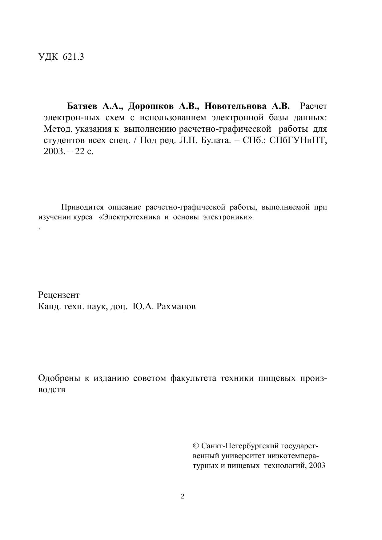 Расчет электронных схем с использованием электронной базы данных: Метод. указания к выполнению расчетно-графической работы для студентов всех специальностей