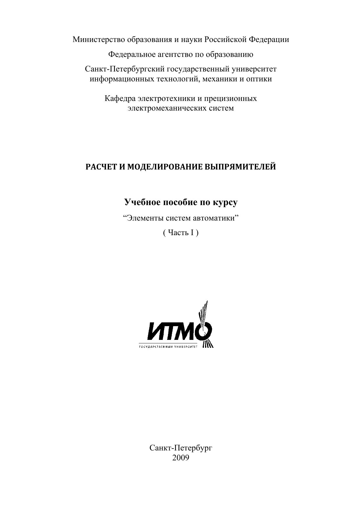 Расчет и моделирование выпрямителей Учебное пособие по курсу. Элементы систем автоматики. Часть I