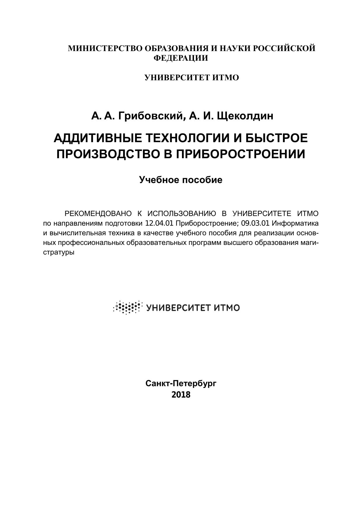 Щеколдин Аддитивные технологии и быстрое производство в приборостроении