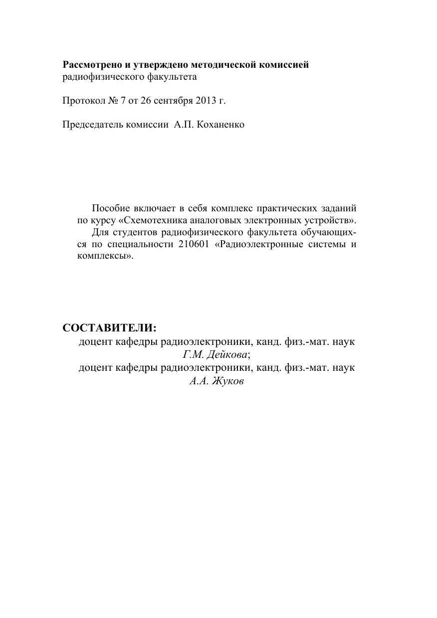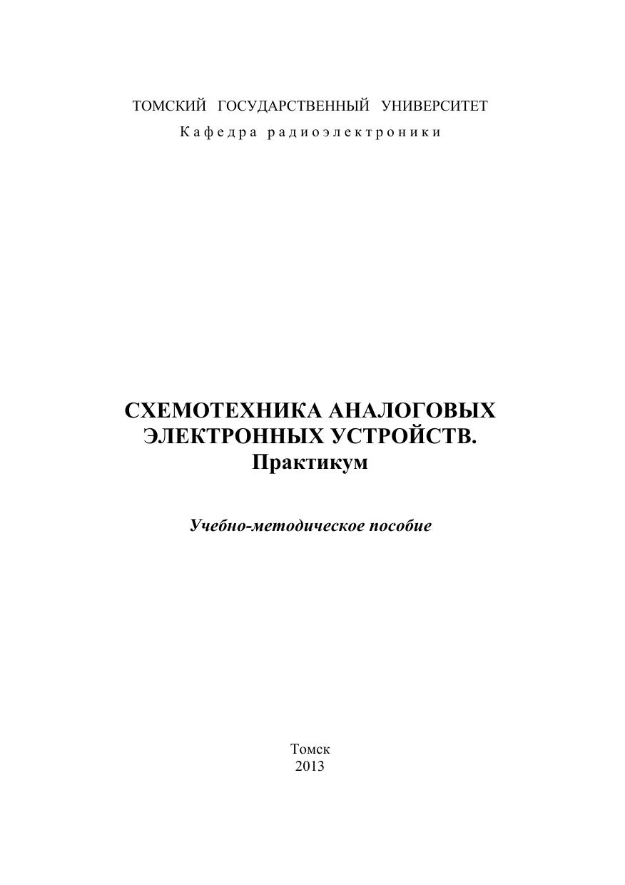 Пособие включает в себя комплекс практических заданий по курсу «Схемотехника аналоговых электронных устройств». Для студентов радиофизического факультета обучающихся по специальности 210601 «Радиоэлектронные системы и комплексы».
