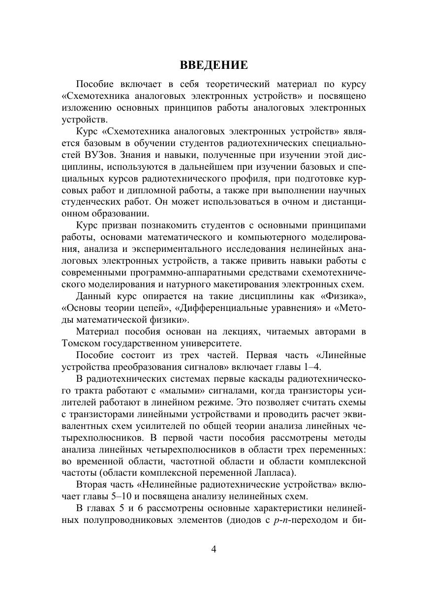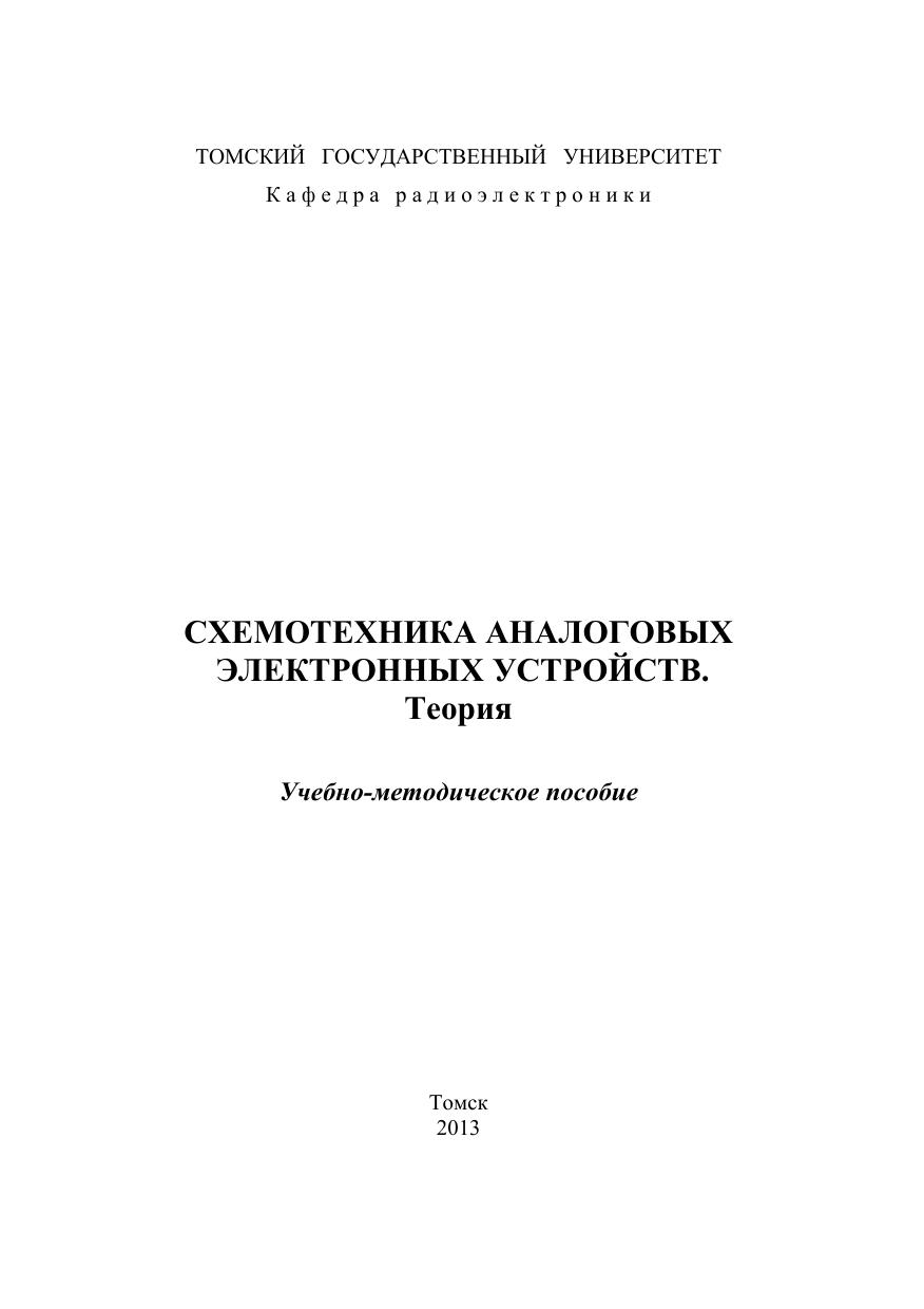 Пособие включает в себя теоретический материал по курсу «Схемотехника аналоговых электронных устройств». Для студентов радиофизического факультета обучающихся по специальности 210601 «Радиоэлектронные системы и комплексы».