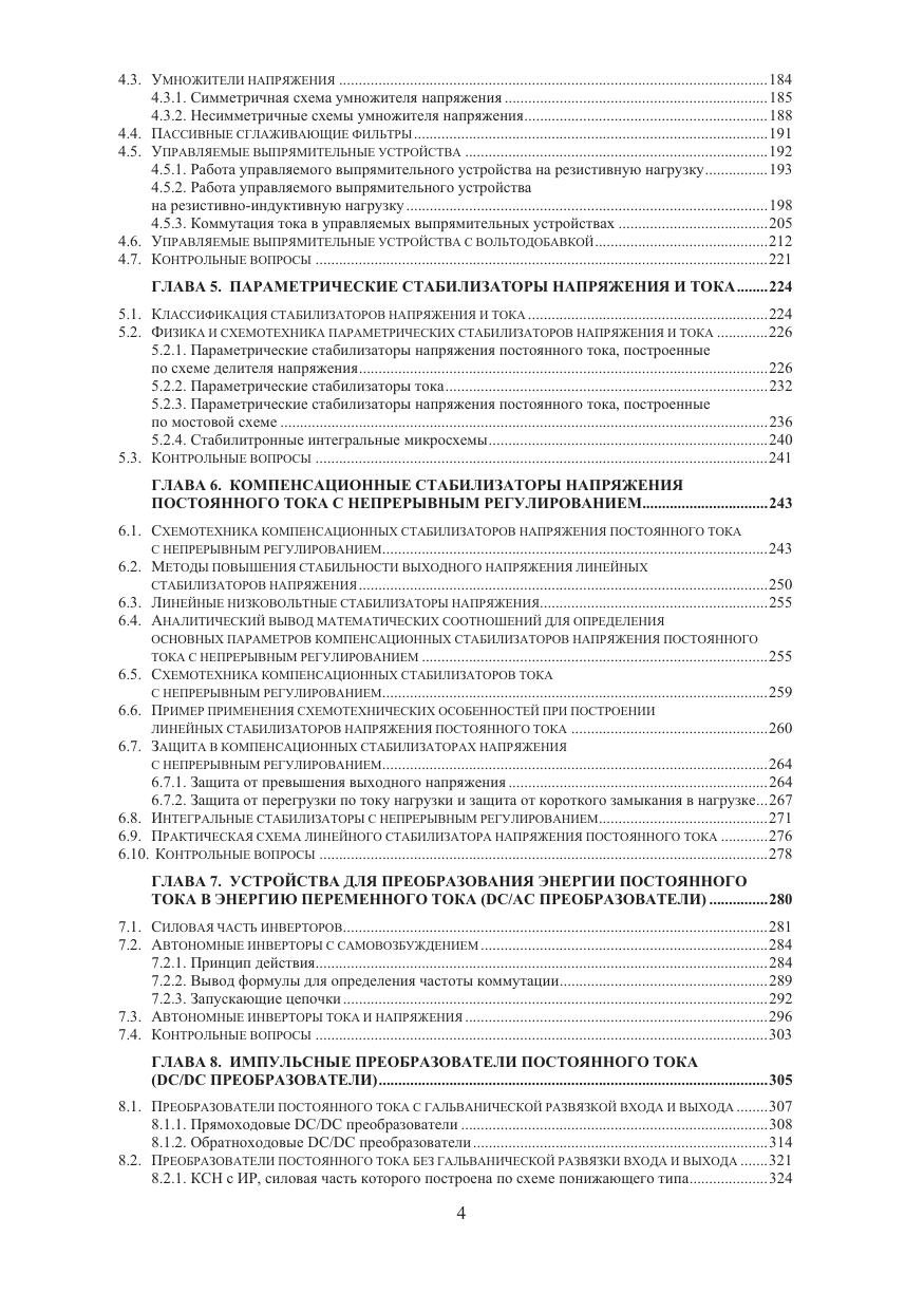 Рассмотрена физика и схемотехника построения и функционирования современных электропреобразовательных устройств, включающих управляемые и неуправляемые выпрямительные устройства, параметрические, линейные и импульсные стабилизаторы напряжения, инверторы тока и напряжения и преобразователи постоянного тока. Значительное внимание уделено современной элементной базе устройств электропитания.