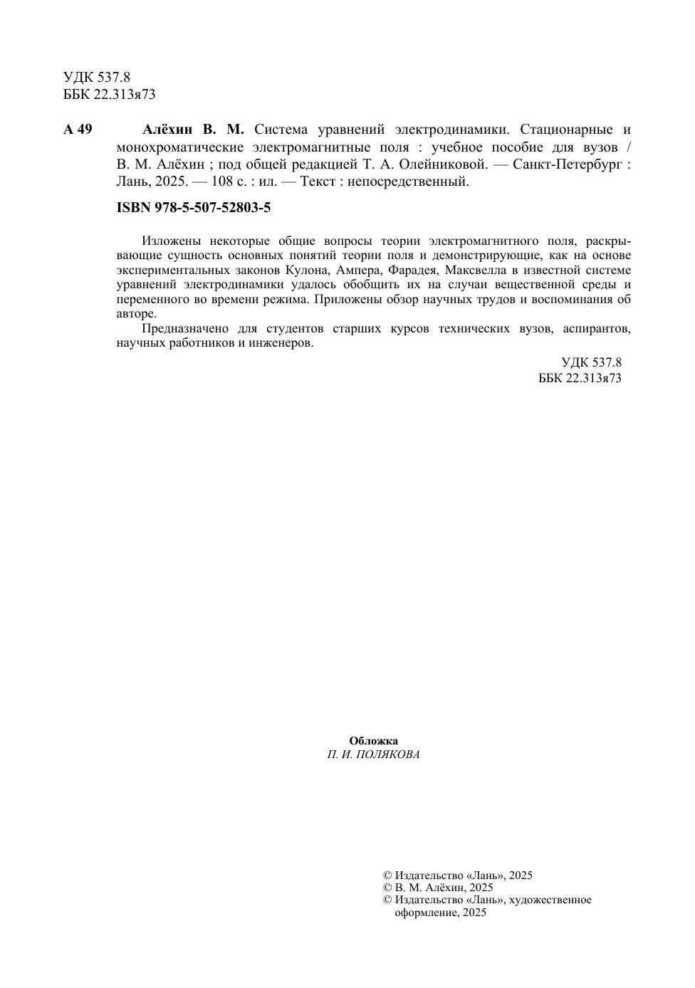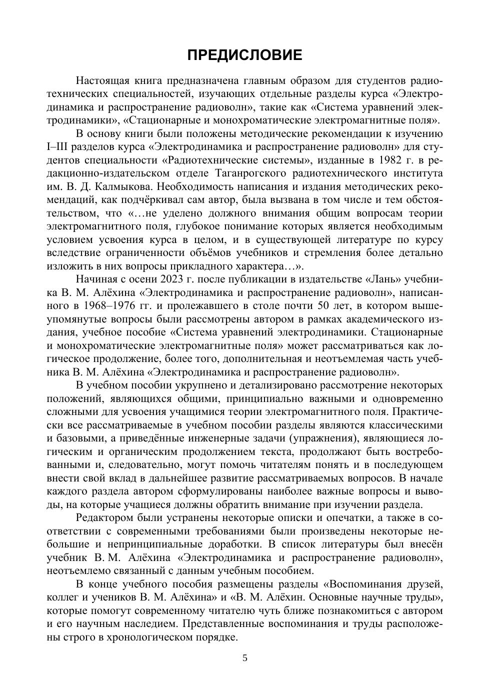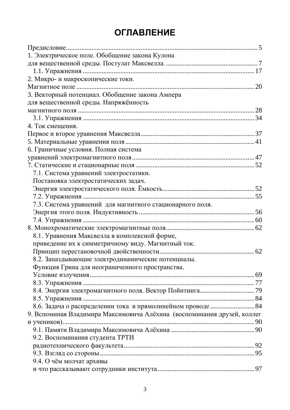 Изложены некоторые общие вопросы теории электромагнитного поля, раскрывающие сущность основных понятий теории поля и демонстрирующие, как на основе экспериментальных законов Кулона, Ампера, Фарадея, Максвелла в известной системе уравнений электродинамики удалось обобщить их на случаи вещественной среды и переменного во времени режима. Приложены обзор научных трудов и воспоминания об авторе. Предназначено для студентов старших курсов технических вузов, аспирантов, научных работников и инженеров.