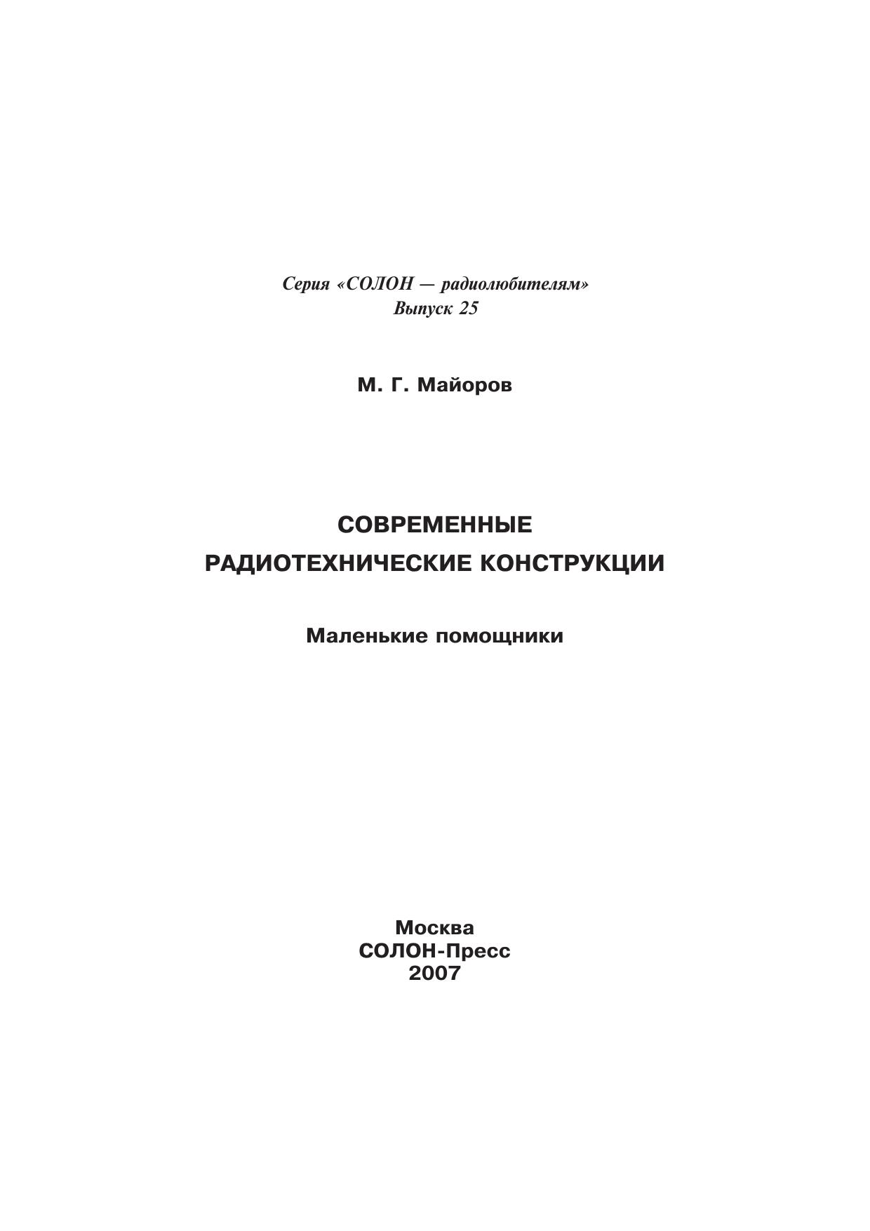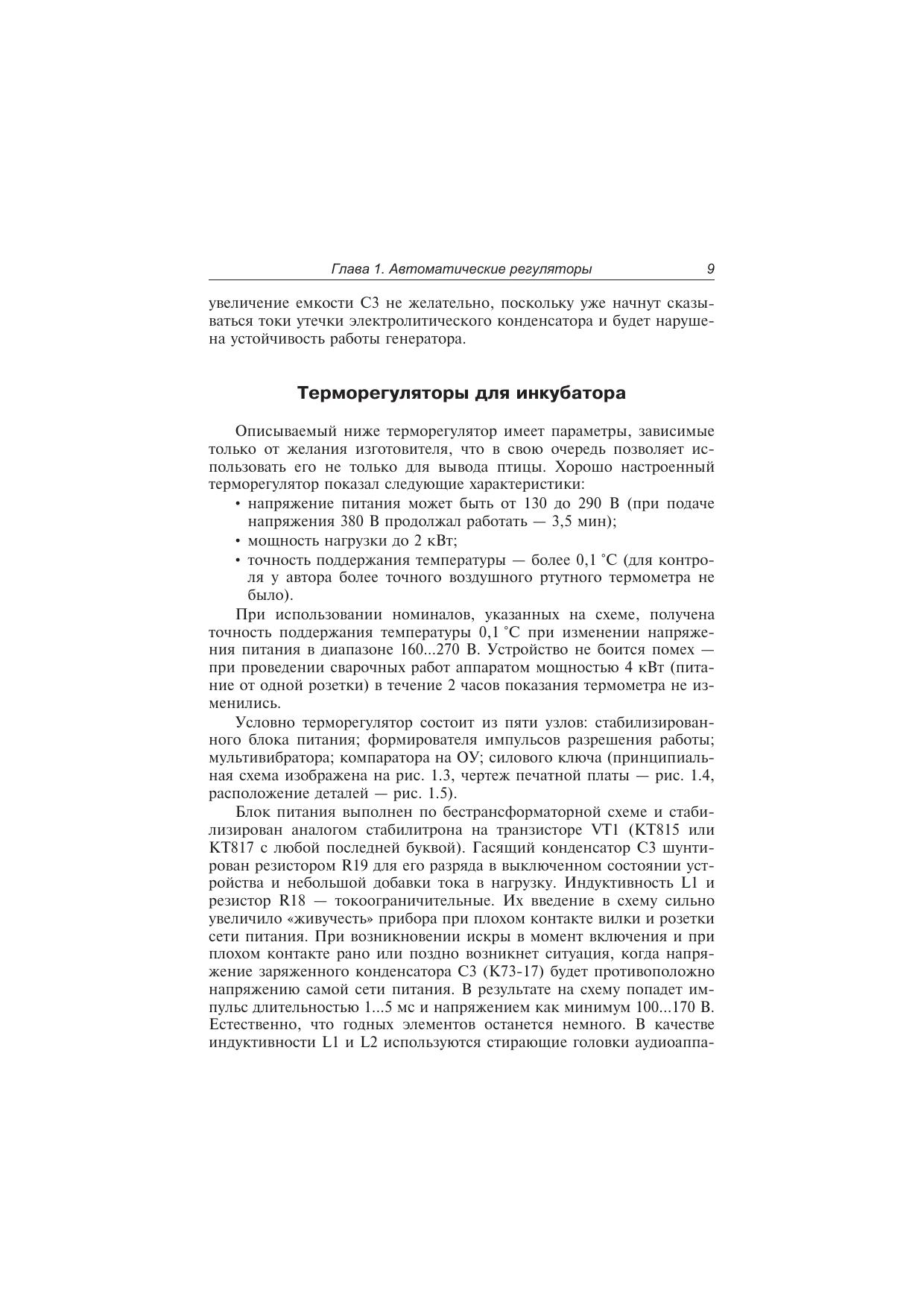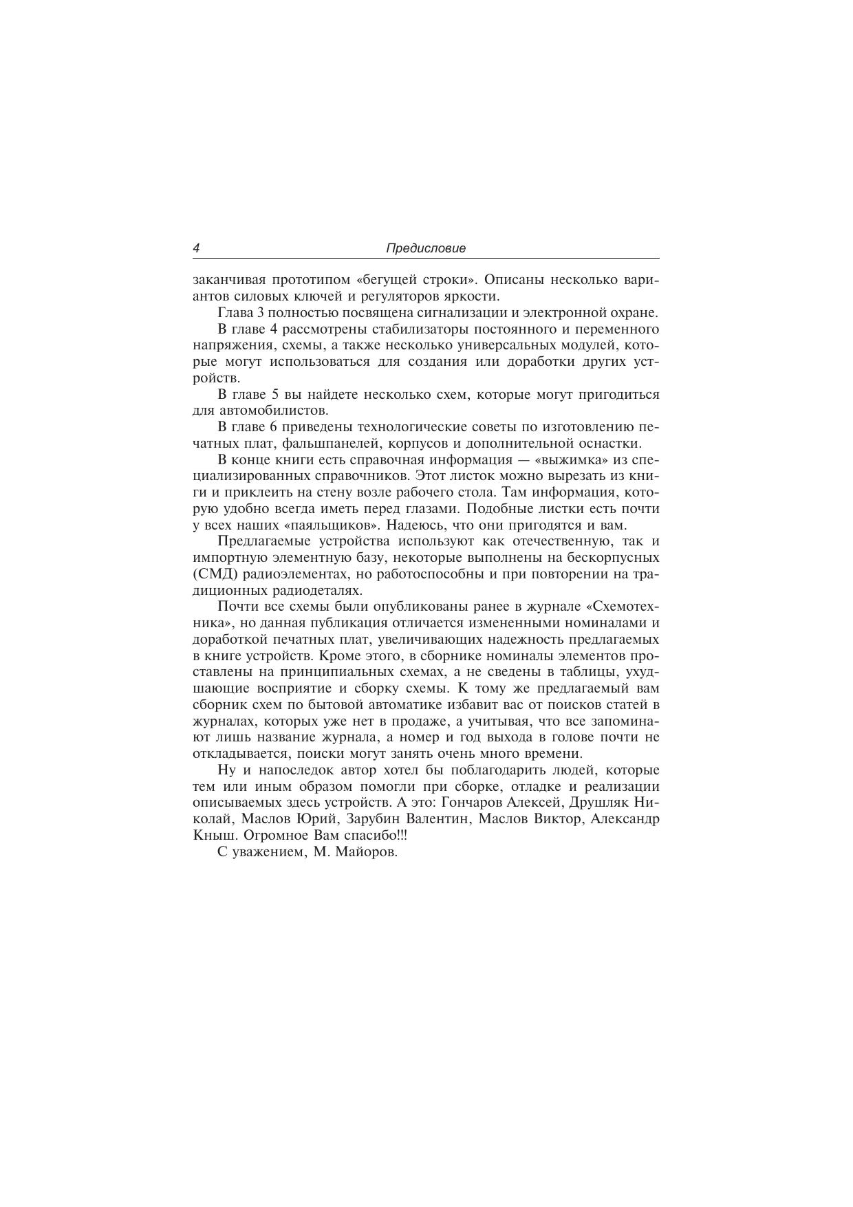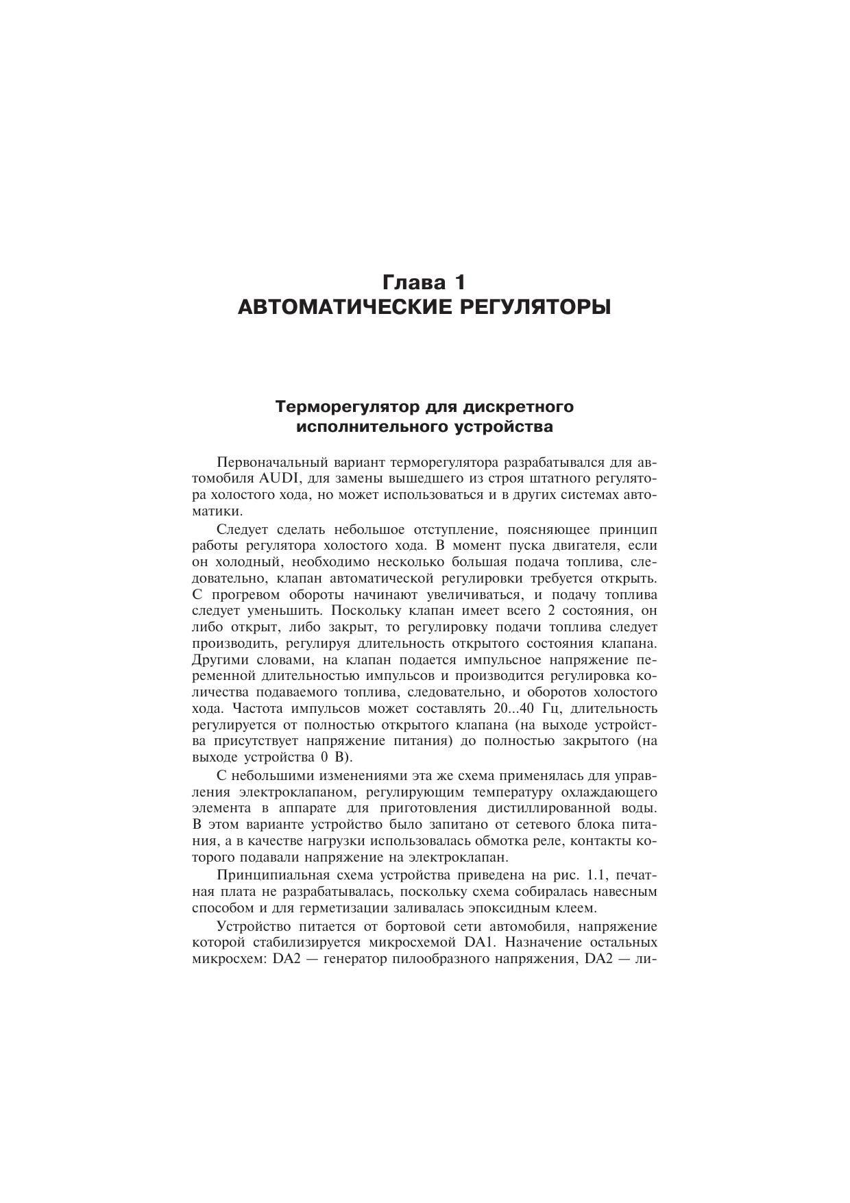 В этой книге рассмотрен ряд устройств, предназначенных для изготовления в домашних условиях и эксплуатации в быту. Приведены принципиальные схемы, чертежи печатных плат и расположение деталей, а также полное описание принципа работы различных терморегуляторов, регуляторов уровня воды, источников питания, сигнализаций, несколько устройств автолюбителям, рассмотрены принципы построения автоматов световых эффектов, описана защита от перенапряжения. Схемы проверены на практике и отличаются высокой надежностью и повторяемостью. Помимо этого описаны радиолюбительские технологии изготовления печатных плат, корпусов и различных деталей из пластмассы и алюминия.Книга предназначена для широкого круга радиолюбителей.