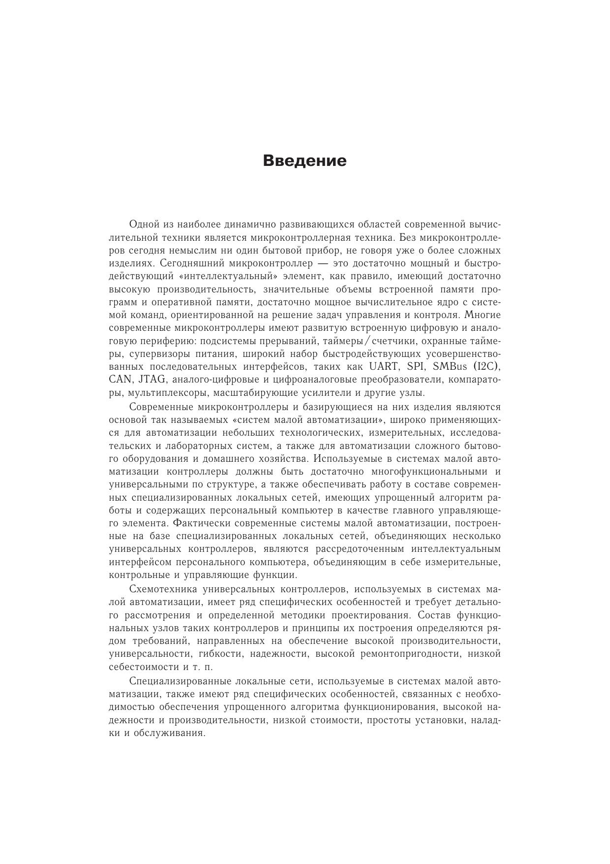 Книга призвана ознакомить читателей с современными принципами и приемами разработки систем малой автоматизации — распределенных систем управления и контроля, реализованных на основе специализированных малых и средних локальных вычислительных сетей, ориентированных на работу в режиме реального времени. Эти системы широко применяются для автоматизации небольших технологических, измерительных, исследовательских и лабораторных установок, обычно территориально расположенных в пределах одного помещения, а в последнее время и для автоматизации домашнего хозяйства.Предназначена для широкого круга читателей, интересующихся микроконтроллерной техникой, как профессионалов, так и любителей.