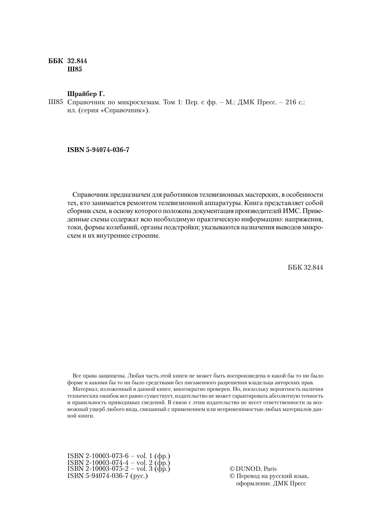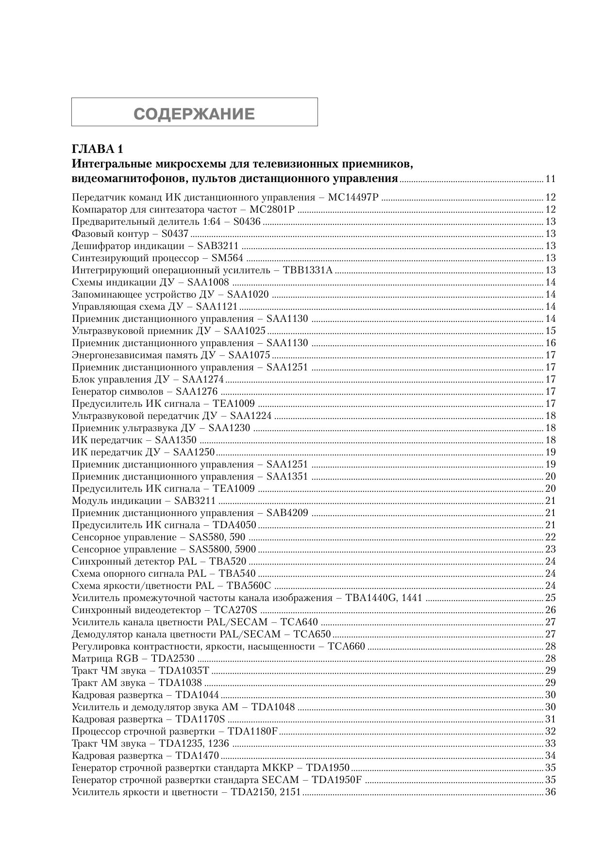 Справочник представляет собой уникальное практическое пособие для тех, кто профессионально занимается ремонтом телевизионной техники или решил самостоятельно собрать комплект для приема спутникового и кабельного телевидения. В основукниги положена документация производителей ИМС, наглядно представляющая всю необходимую информацию: внутреннее строение микросхем и назначение выводов, напряжения, токи, форму колебаний, органы подстройки.