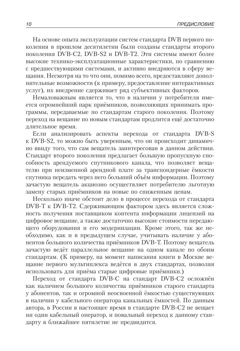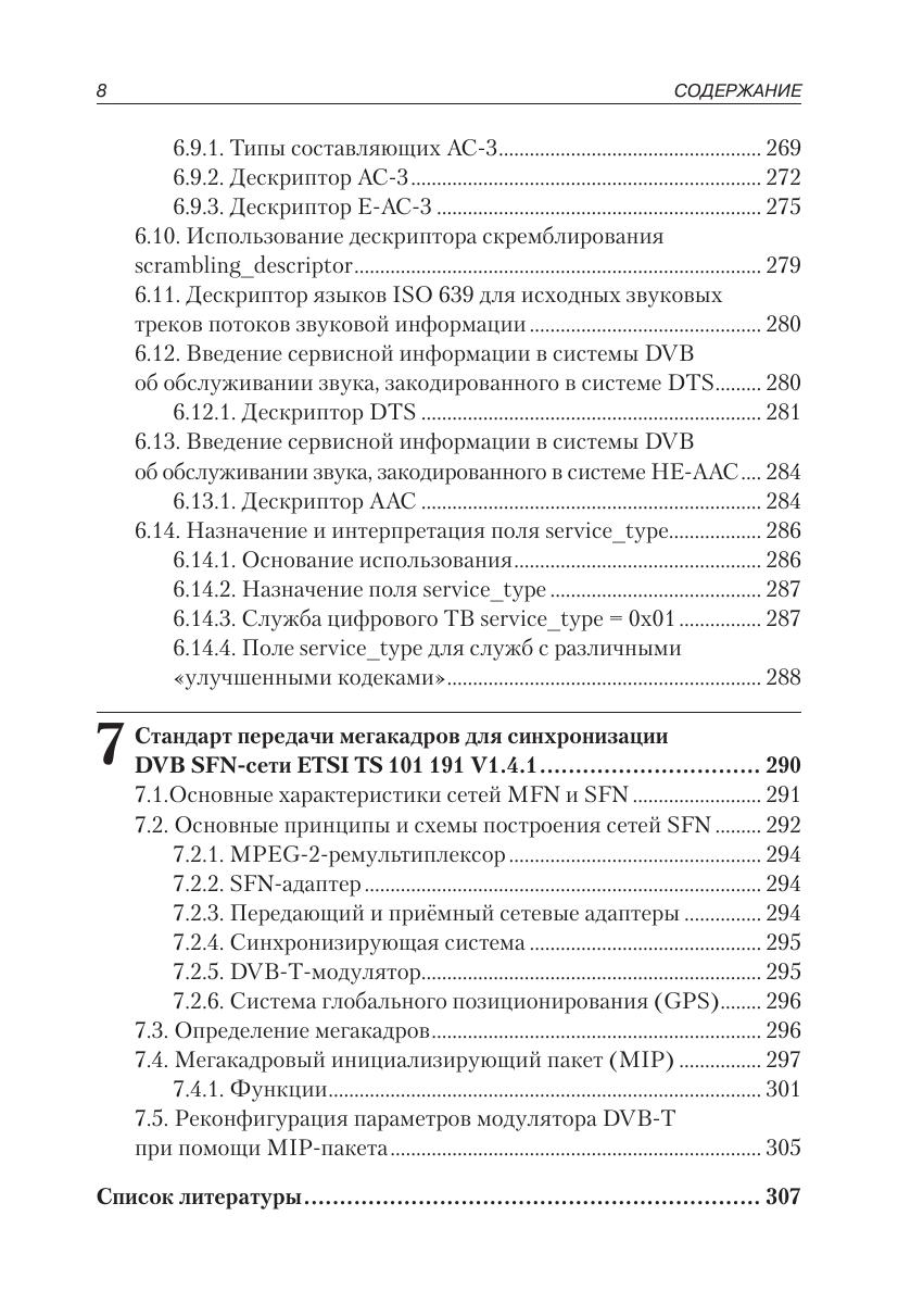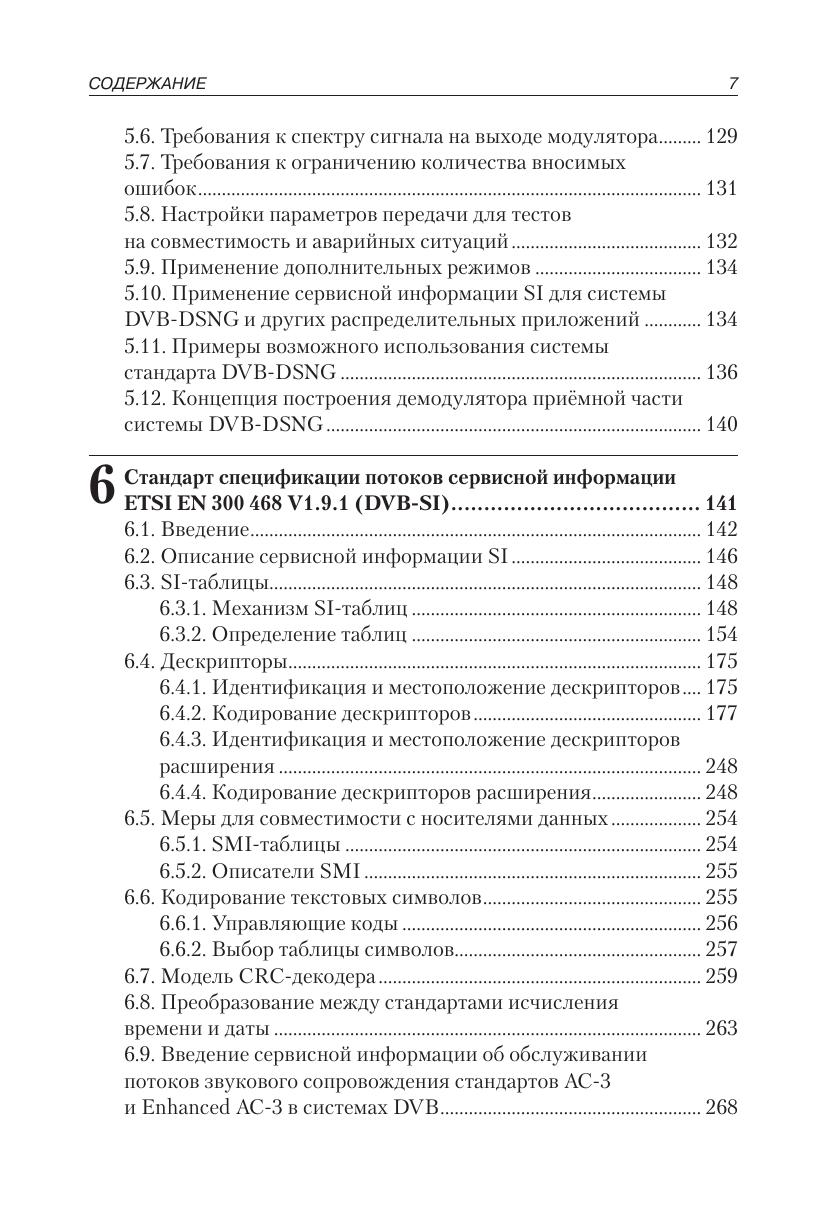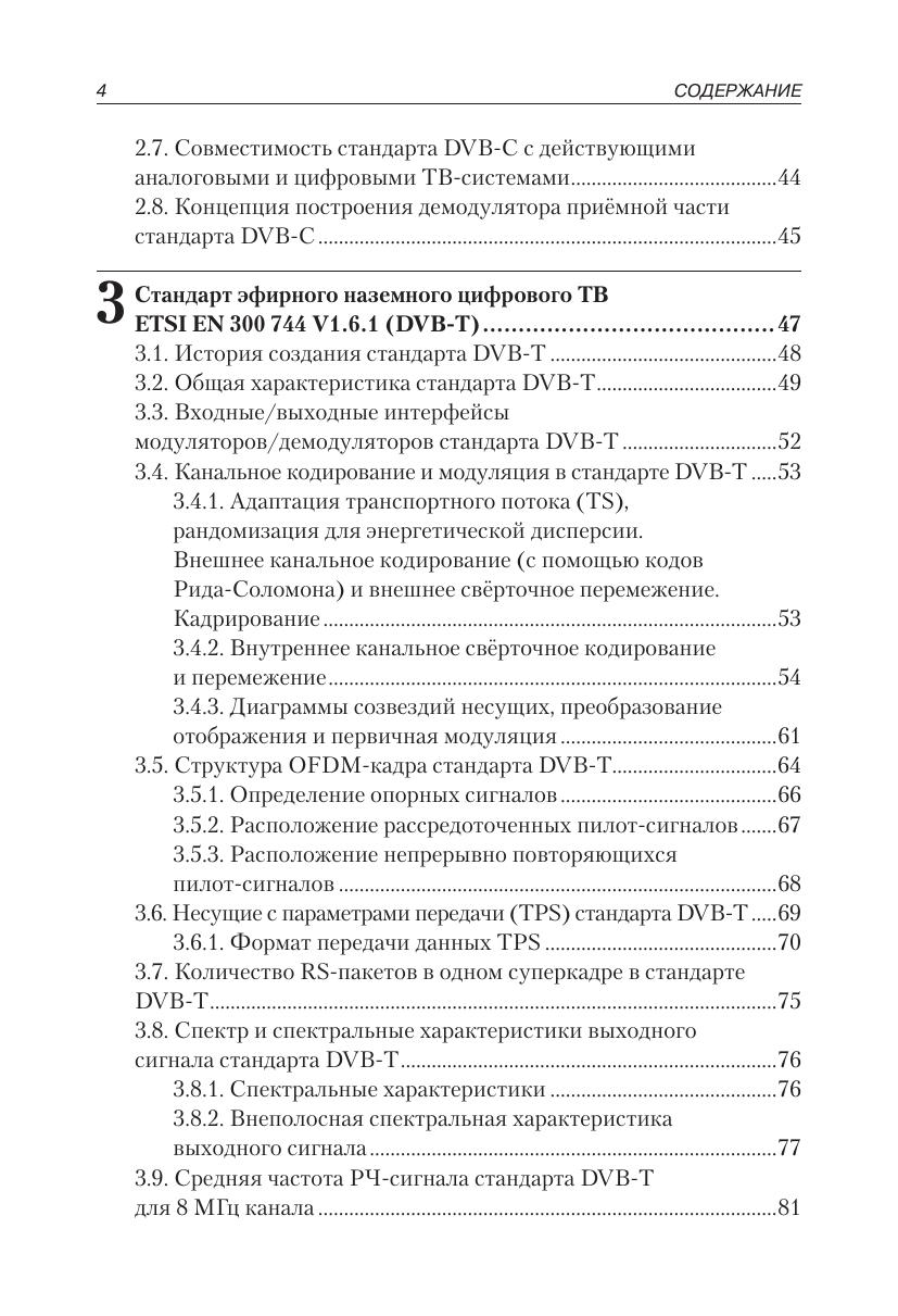 Книга представляет собой справочник по основным стандартам цифрового телевизионного вещания DVB (Digital Video Broadcasting), принятым Европейским институтом телекоммуникационной стандартизации ETSI, ставшими де-факто наиболее распространенными в мире. Материал книги подготовлен на основе перевода на русский язык официальных стандартов, описывающих формирование и передачу цифровых сигналов стандартов DVB первого поколения для спутникового, кабельного, эфирного наземного ТВ-вещания, а также спутниковой системы сбора и передачи новостей DSNG. В отдельной главе представлен стандарт ТВ-вещания для носимых приемников телевизионных программ, являющийся расширением стандарта эфирного наземного вещания. Кроме этого в книгу включена глава об организации одночастотных SFN сетей для эфирного наземного вещания. Методы организации и передачи сервисной информации, общие для всех описываемых стандартов, приведены в отдельной главе. Книга предназначена для широкого круга специалистов в сфере цифрового теле- и радиовещания, а также студентов радиотехнических специальностей высших учебных заведений.