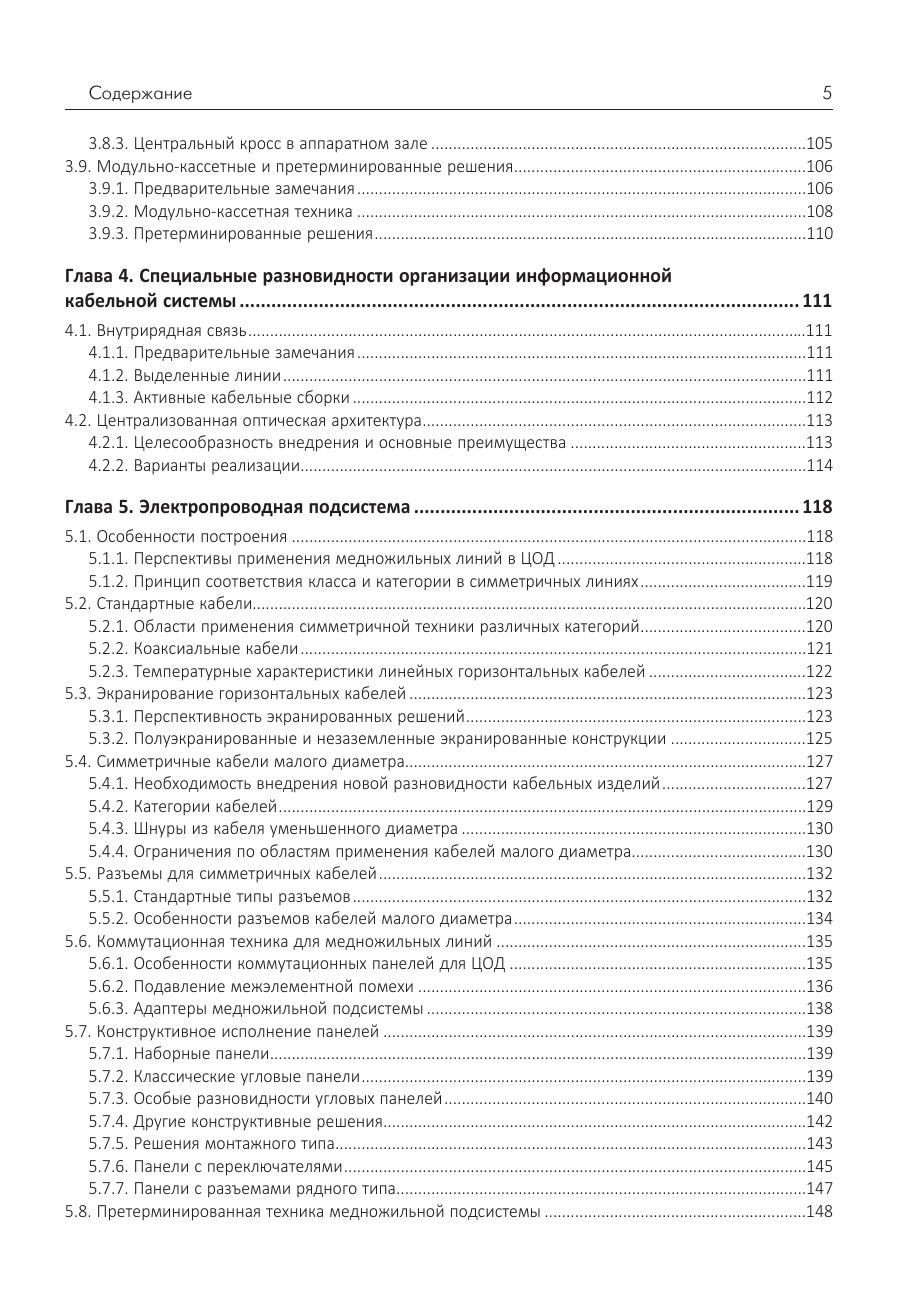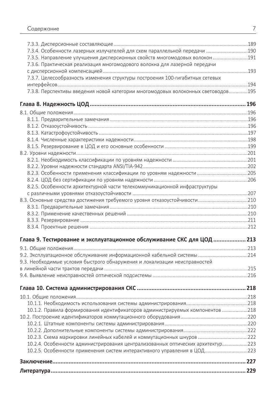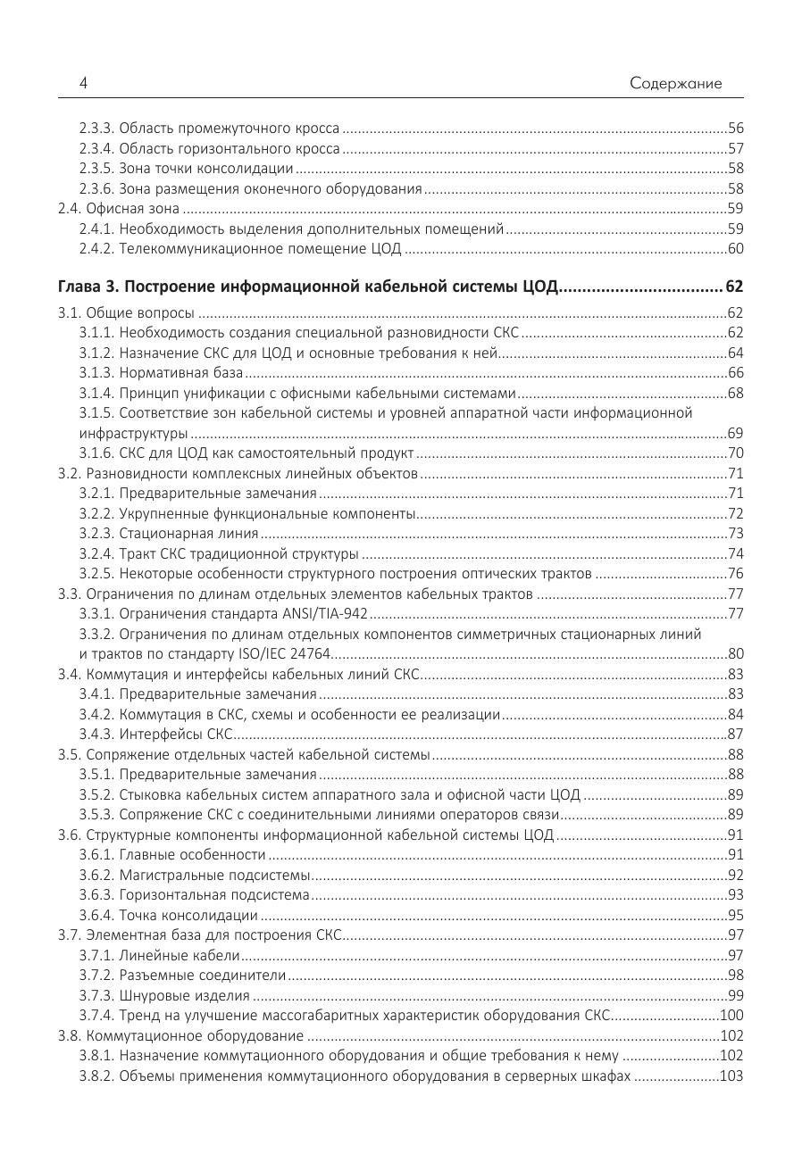 Рассматриваются основные подходы к построению центров обработки данных, в том числе те аспекты архитектурного исполнения, которые имеют важное значение с точки зрения реализации в нем структурированной кабельной системы. Выполнен обзор схем построения телекоммуникационной инфраструктуры этого технического объекта. Обсуждаются требования к информационной кабельной системе ЦОД, и приведены варианты их реализации. Подробно описаны принципы построения медножильной и оптической подсистем СКС. Приведены основные особенности и отличия электропроводной и волоконно-оптической элементной базы с анализом фокусных областей их использования. Представлена классификация по уровням эксплуатационной надежности, и описаны мероприятия по достижению требуемой величины этого параметра в части, относящейся к СКС. Отдельно затронуты вопросы тестирования и эксплуатационного обслуживания информационной кабельной системы. Для специалистов системных интеграторов и инсталляционных компаний, сотрудников проектных организаций и эксплуатационного персонала ЦОД.