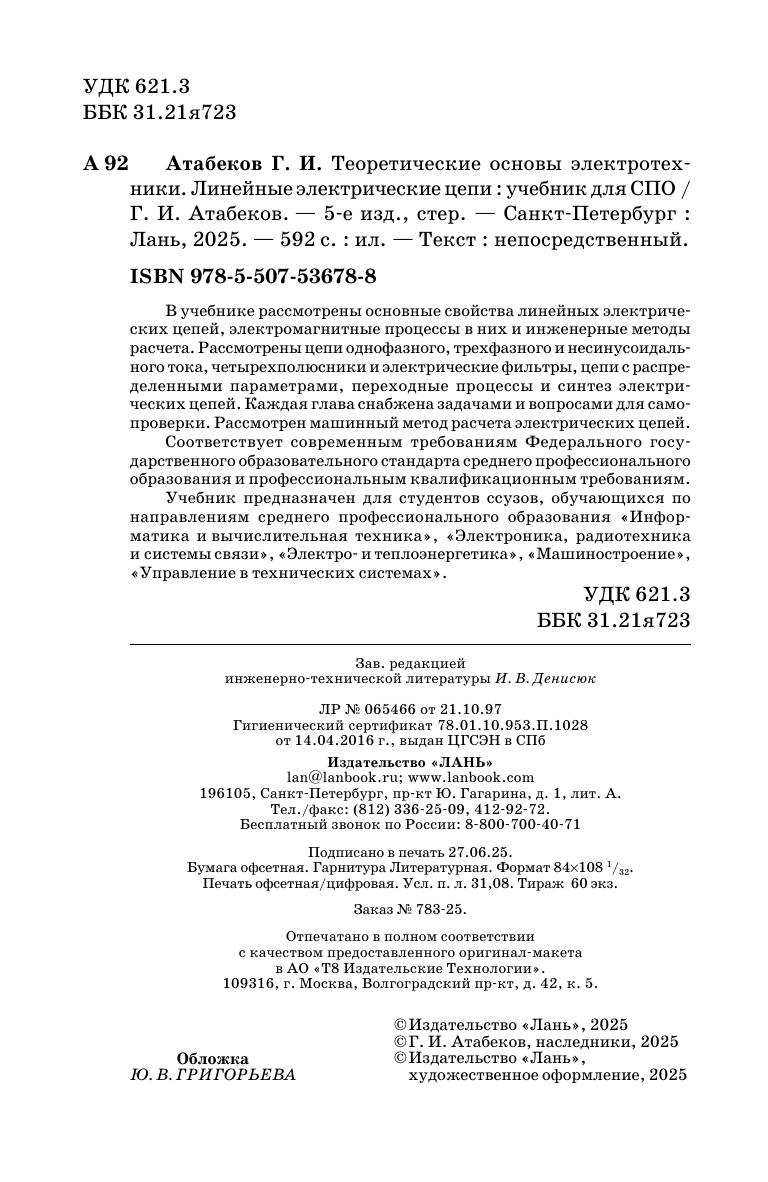 В учебнике рассмотрены основные свойства линейных электрических цепей, электромагнитные процессы в них и инженерные методы расчета. Рассмотрены цепи однофазного, трехфазного и несинусоидального тока, четырехполюсники и электрические фильтры, цепи с распределенными параметрами, переходные процессы и синтез электрических цепей. Каждая глава снабжена задачами и вопросами для самопроверки. Рассмотрен машинный метод расчета электрических цепей. Соответствует современным требованиям Федерального государственного образовательного стандарта среднего профессионального образования и профессиональным квалификационным требованиям. Учебник предназначен для студентов, обучающихся по направлениям среднего профессионального образования «Информатика и вычислительная техника», «Электроника, радиотехника и системы связи», «Электро- и теплоэнергетика», «Машиностроение», «Управление в технических системах».