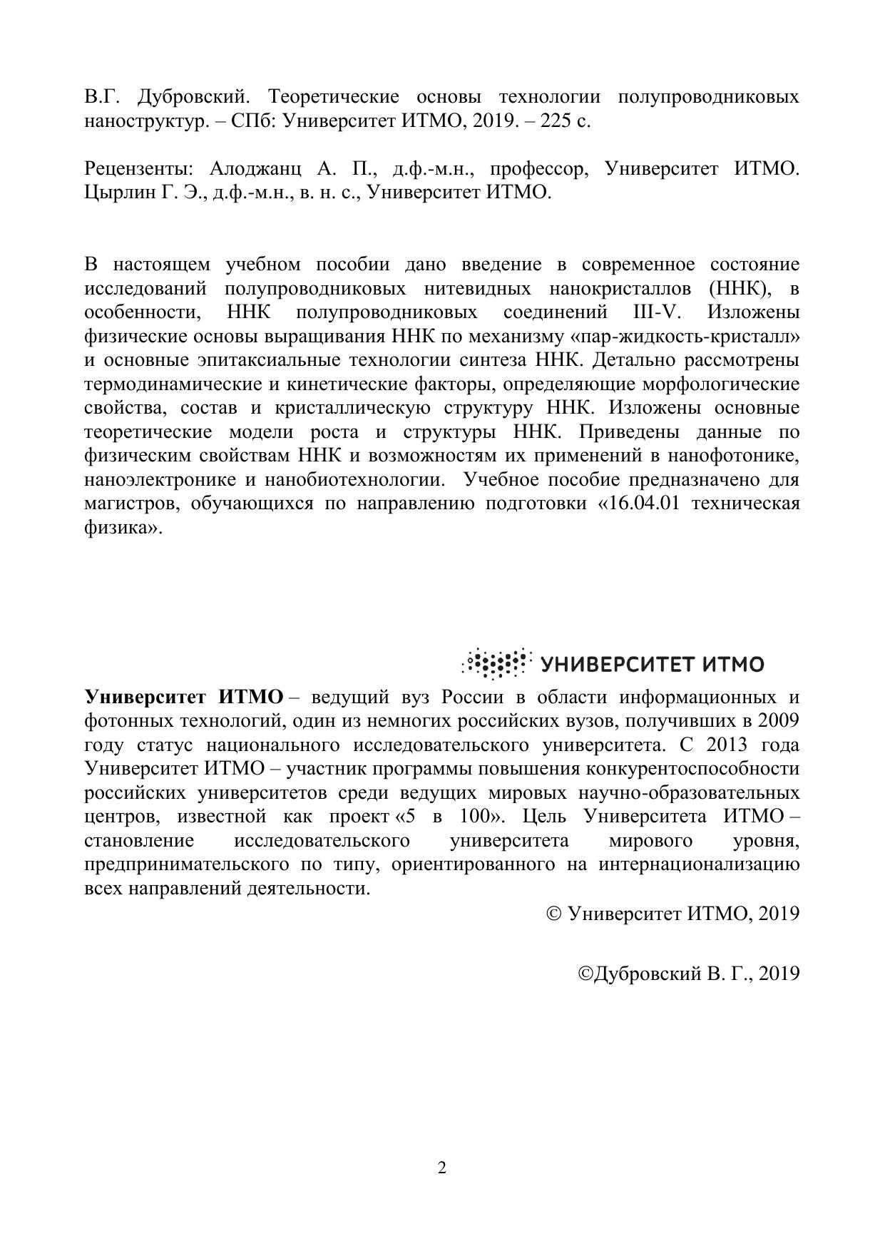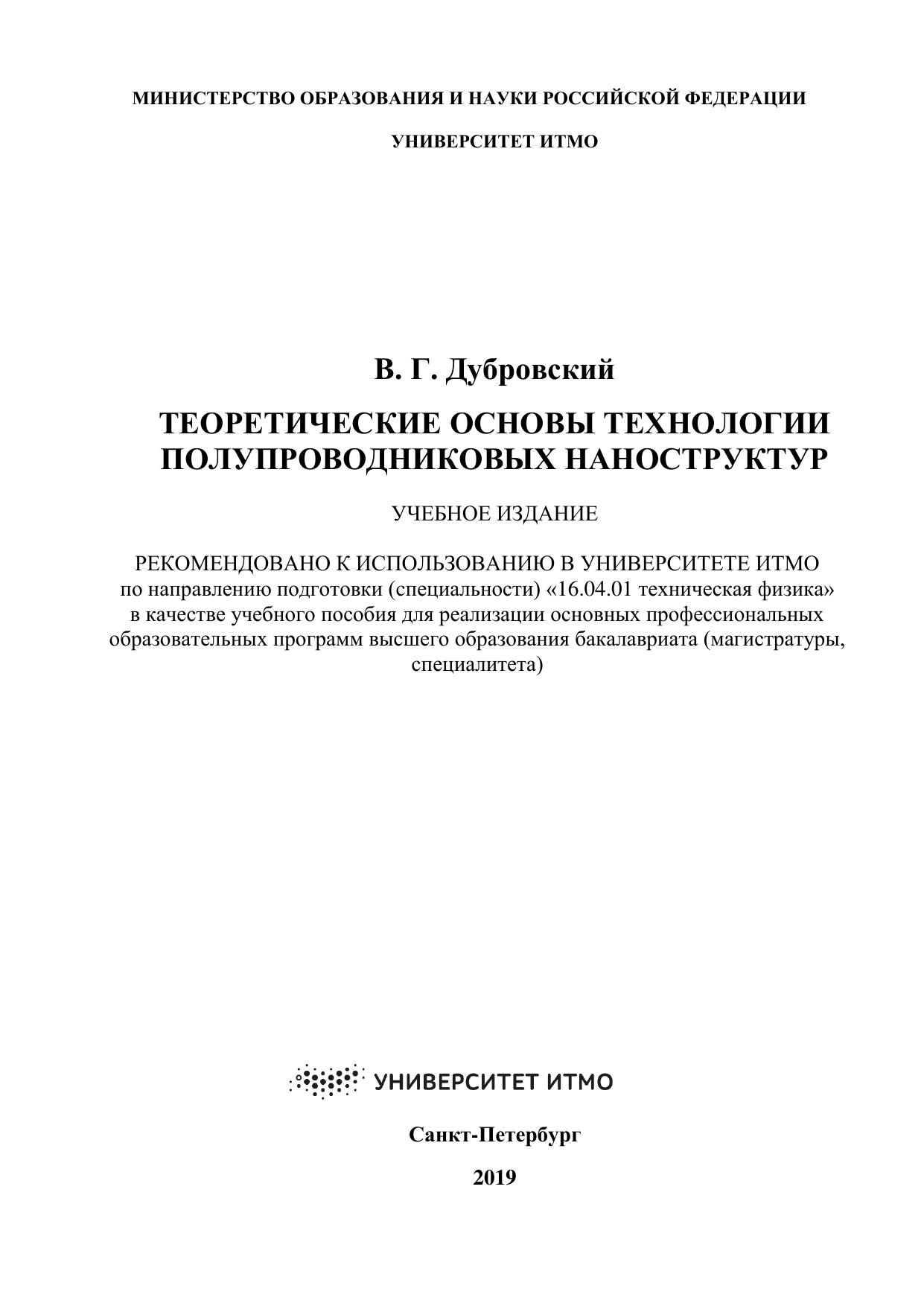 В настоящем учебном пособии дано введение в современное состояние исследований полупроводниковых нитевидных нанокристаллов (ННК), в особенности, ННК полупроводниковых соединений III-V. Изложены физические основы выращивания ННК по механизму «пар-жидкость-кристалл» и основные эпитаксиальные технологии синтеза ННК. Детально рассмотрены термодинамические и кинетические факторы, определяющие морфологические свойства, состав и кристаллическую структуру ННК. Изложены основные теоретические модели роста и структуры ННК. Приведены данные по физическим свойствам ННК и возможностям их применений в нанофотонике, наноэлектронике и нанобиотехнологии. Учебное пособие предназначено для магистров, обучающихся по направлению подготовки «16.04.01 техническая физика».
