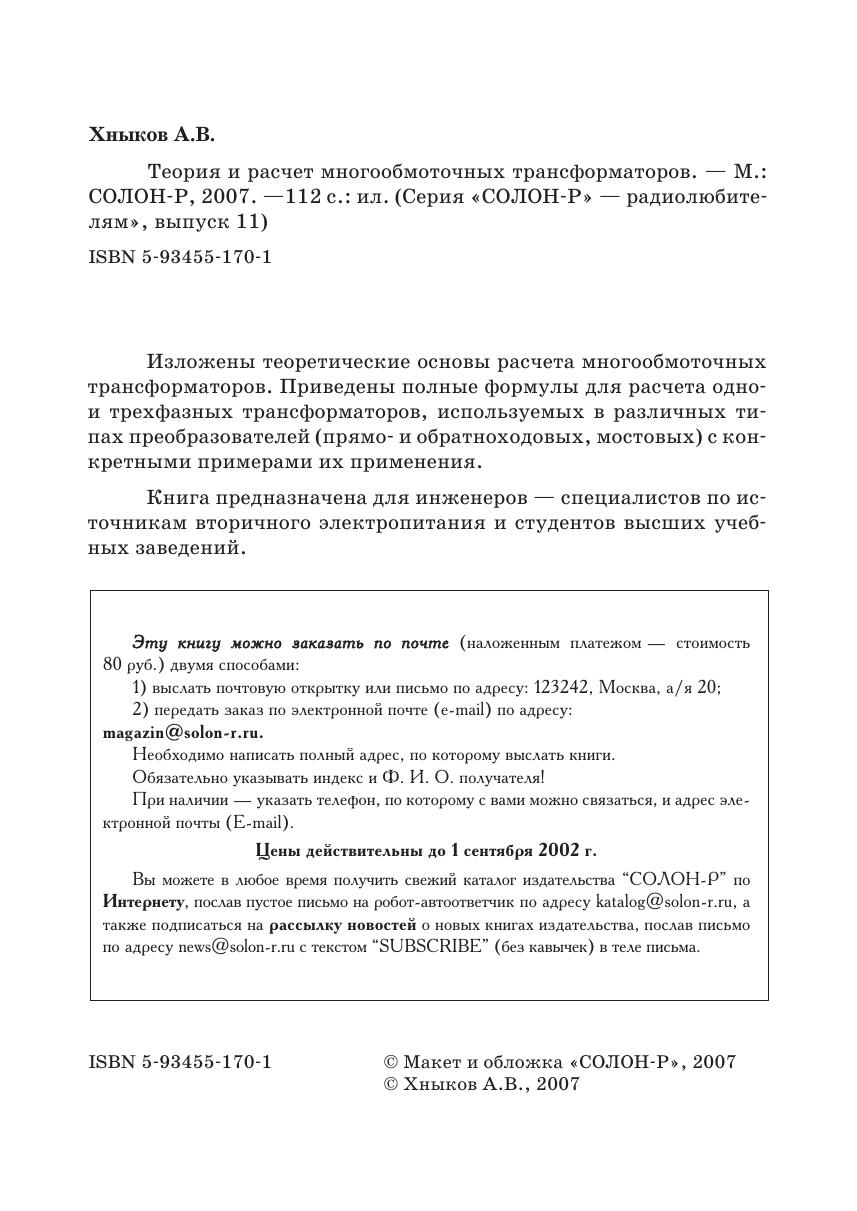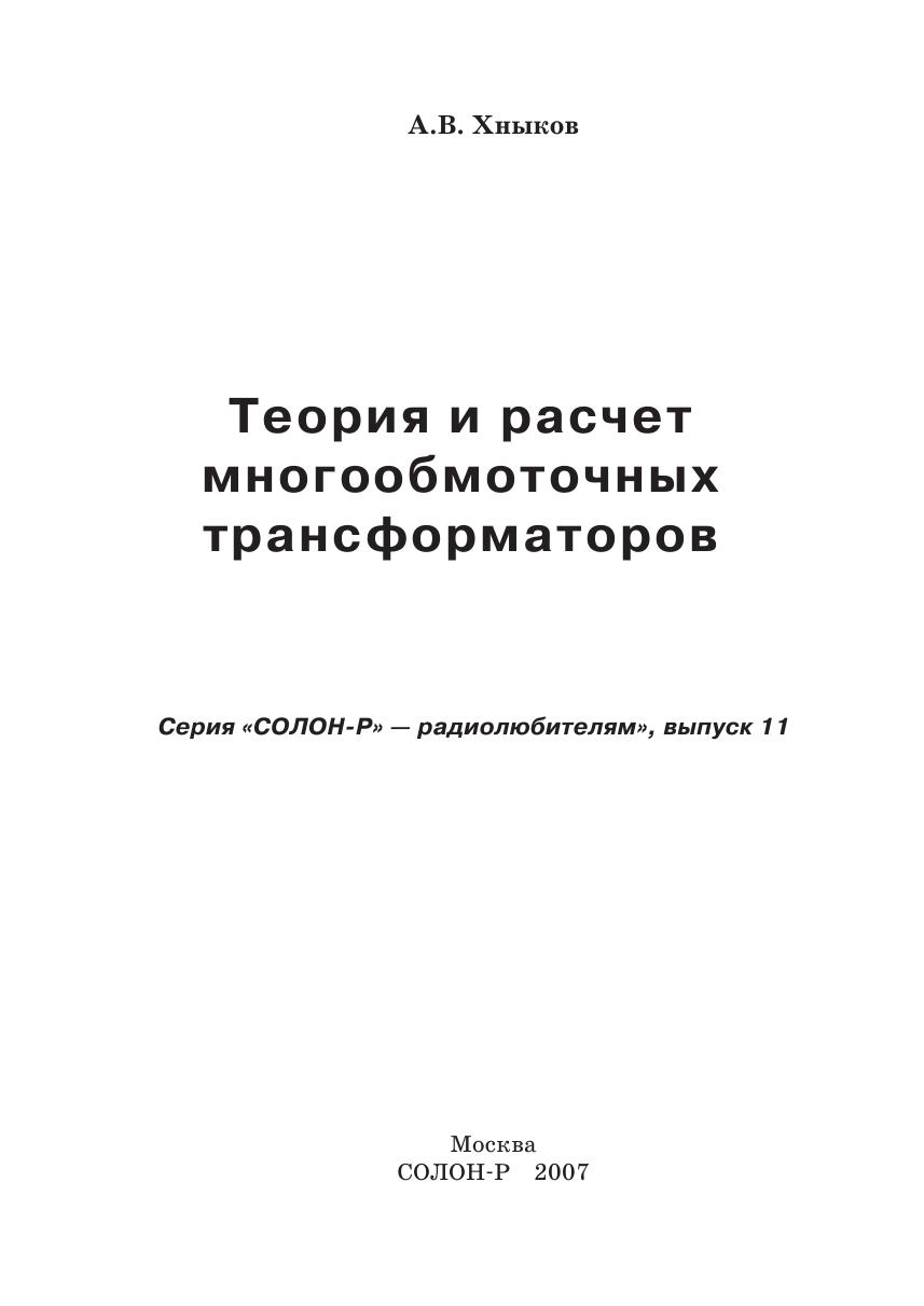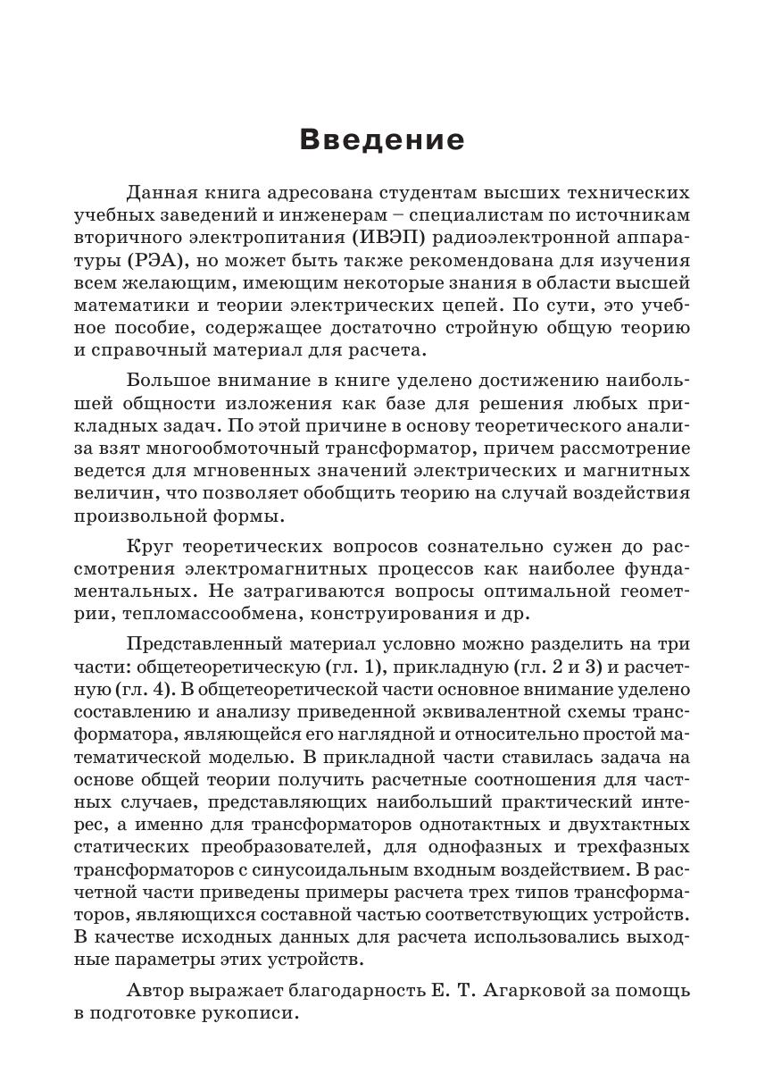 Изложены теоретические основы расчета многообмоточных трансформаторов. Приведены полные формулы для расчета одно-и трехфазных трансформаторов, используемых в различных типах преобразователей (прямо- и обратноходовых, мостовых) с конкретными примерами их применения.Книга предназначена для инженеров — специалистов по источникам вторичного электропитания и студентов высших учебных заведений.