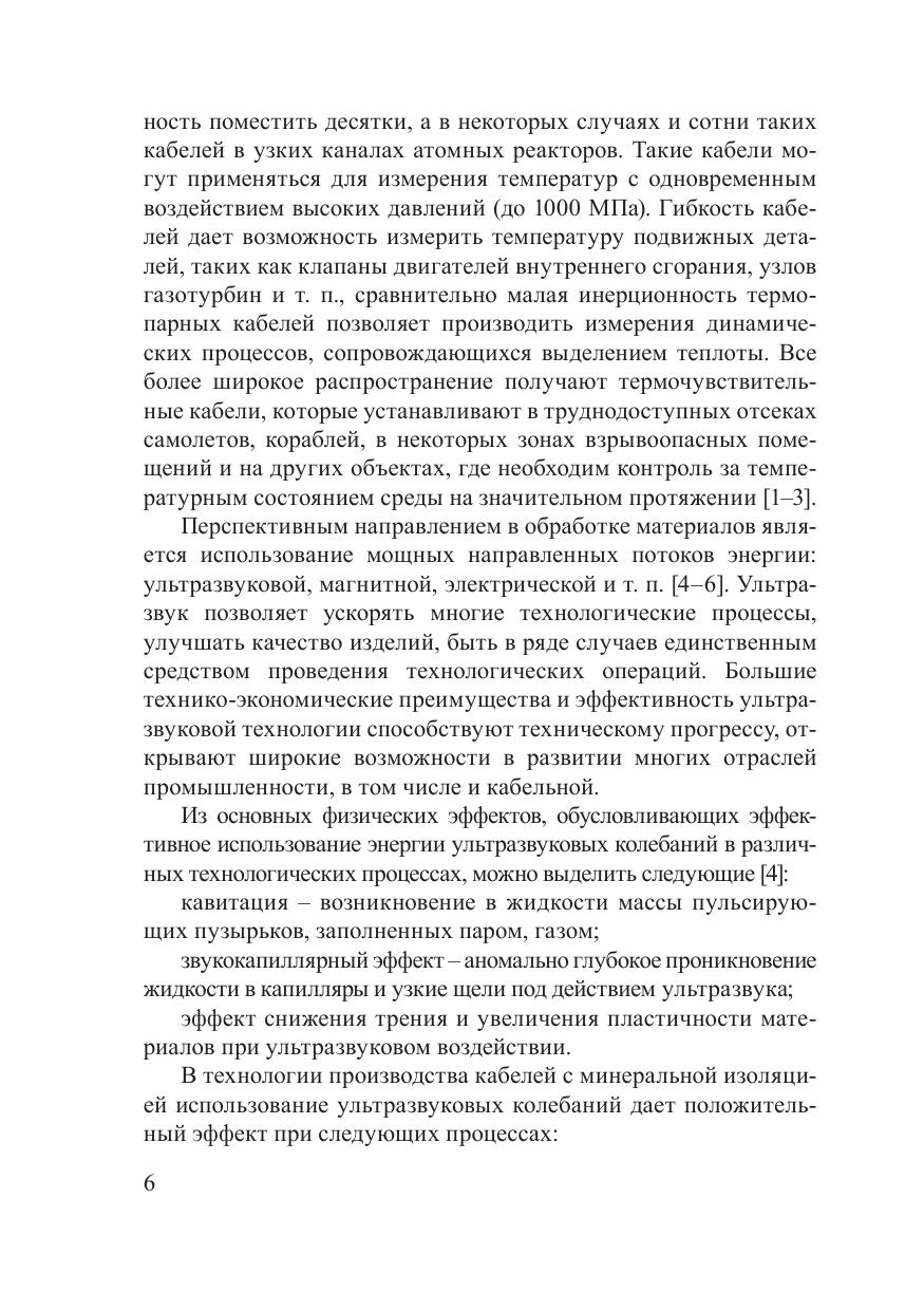 В монографии представлены технологии получения и обработки термопарных и нагревостойких кабелей с минеральной изоляцией в металлических оболочках с использованием высококонцентрированных источников энергии. Показано, что использование ультразвука при обработке композиционных кабелей позволяет решить ряд сложных технологических задач, повысить производительность труда, улучшить качество и расширить ассортимент готовых изделий. Представлены конструкции нагревостойких и термопарных кабелей, приведены их параметры, эксплуатационные свойства и методы испытаний. Предназначена для научных работников, инженеров, работающих в области материаловедения, измерительной и кабельной техники, преподавателей, аспирантов и студентов.