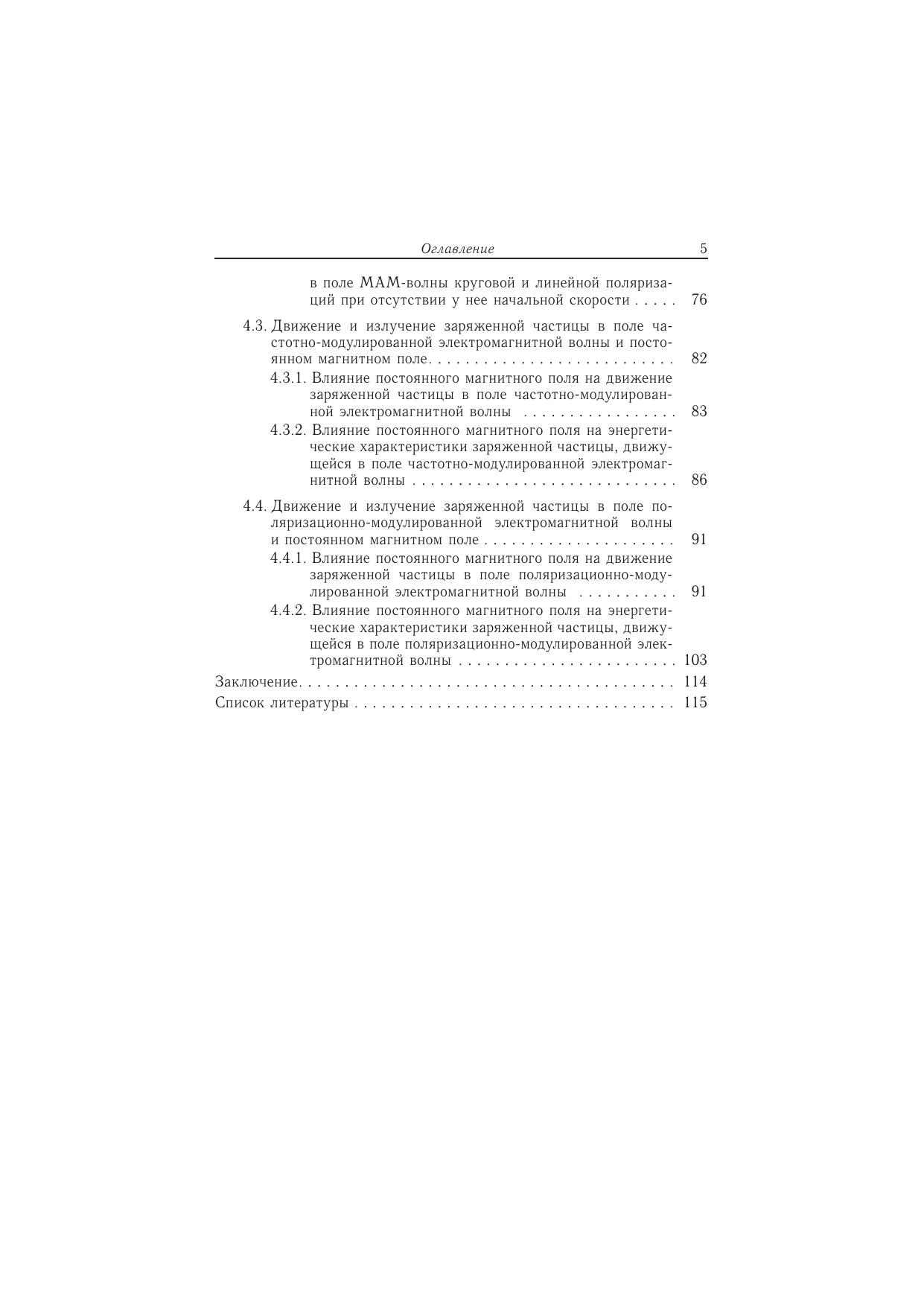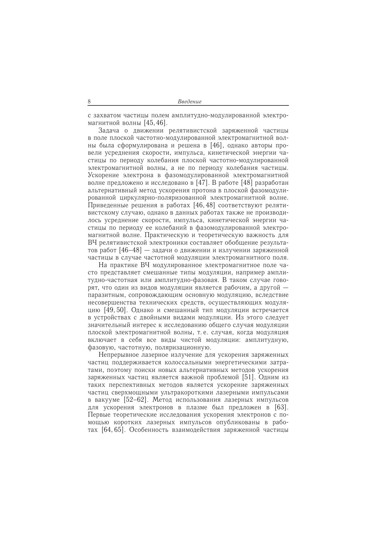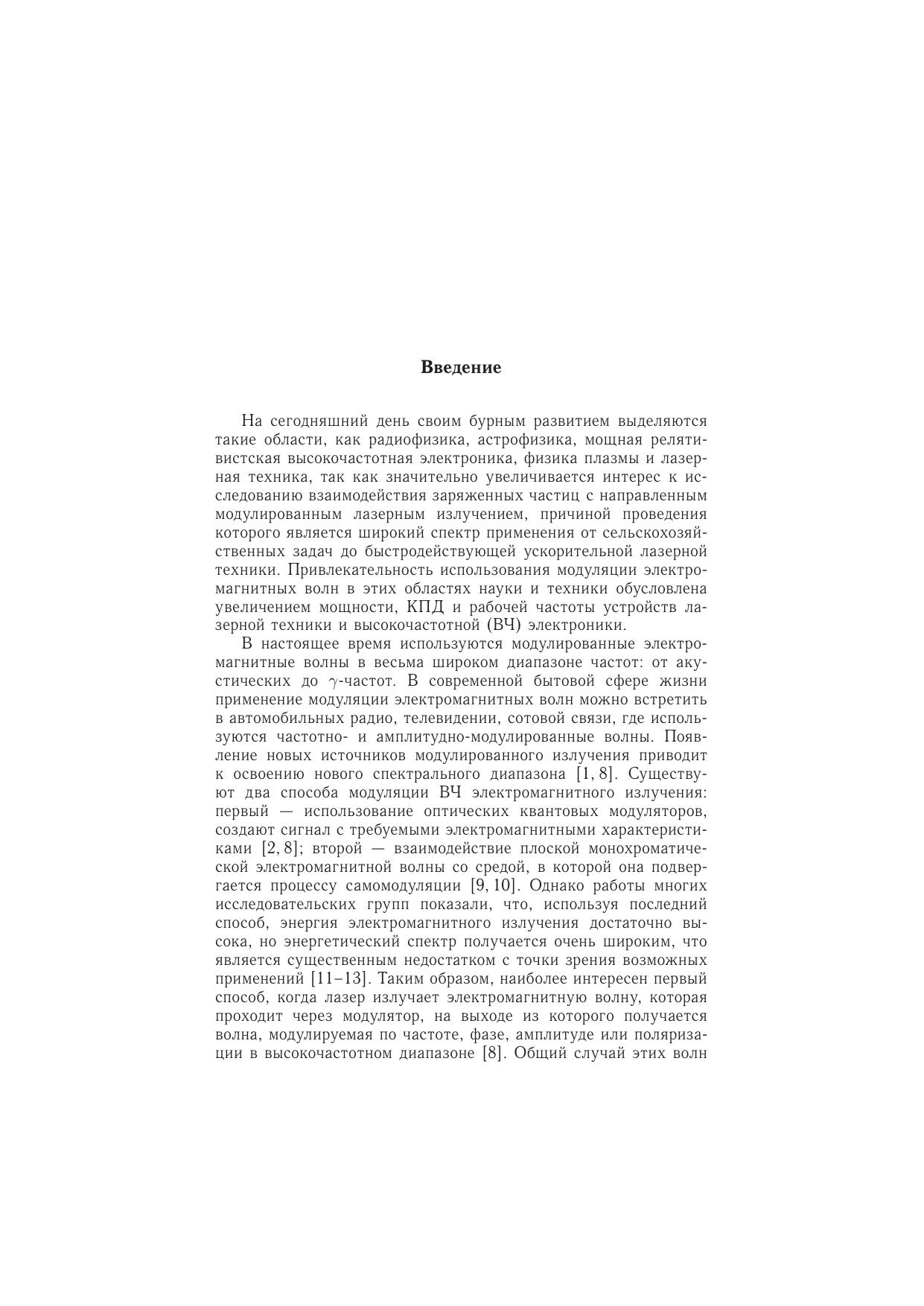 В монографии впервые рассмотрены все типы модуляции электромагнитной волны, движение и излучение релятивистской заряженной частицы в модулированной волне. Все результаты получены в рамках классической электродинамики и без использования приближенных методов. Также подробно исследовано влияние внешнего постоянного магнитного поля на процессы в модулированной волне, что представляет большой интерес в связи с разработкой реальных технических систем. Результаты могут быть использованы в решении ряда физических проблем: математической интерпретации экспериментов по взаимодействию высокоинтенсивного лазерного излучения с магнитоактивной плазмой, улучшения характеристик систем связи, а также разработки многочастотных лазеров и техники модуляции. Книга будет полезна преподавателями студентам радиофизических и радиотехнических специальностей, а также специалистам, применяющим методы электродинамики в профессиональной деятельности.