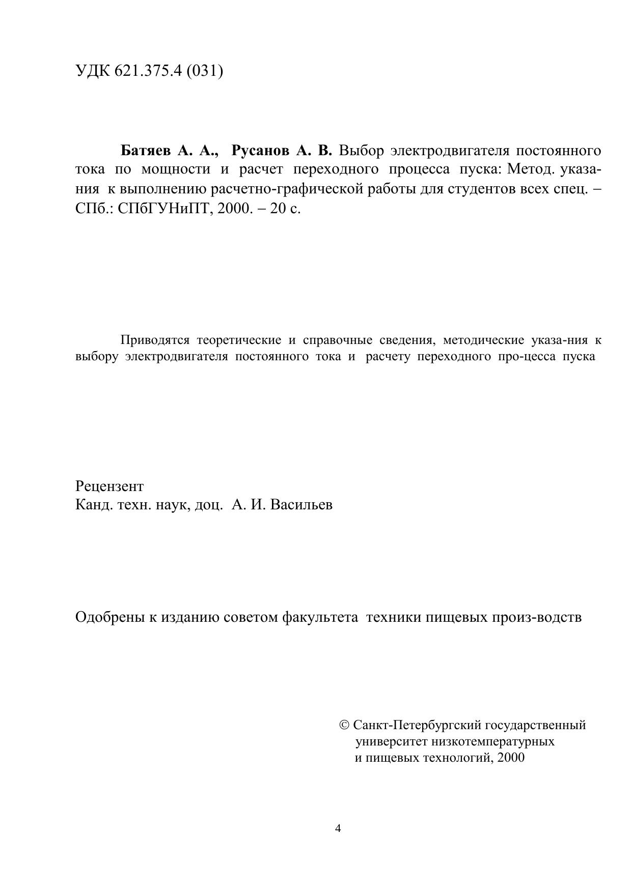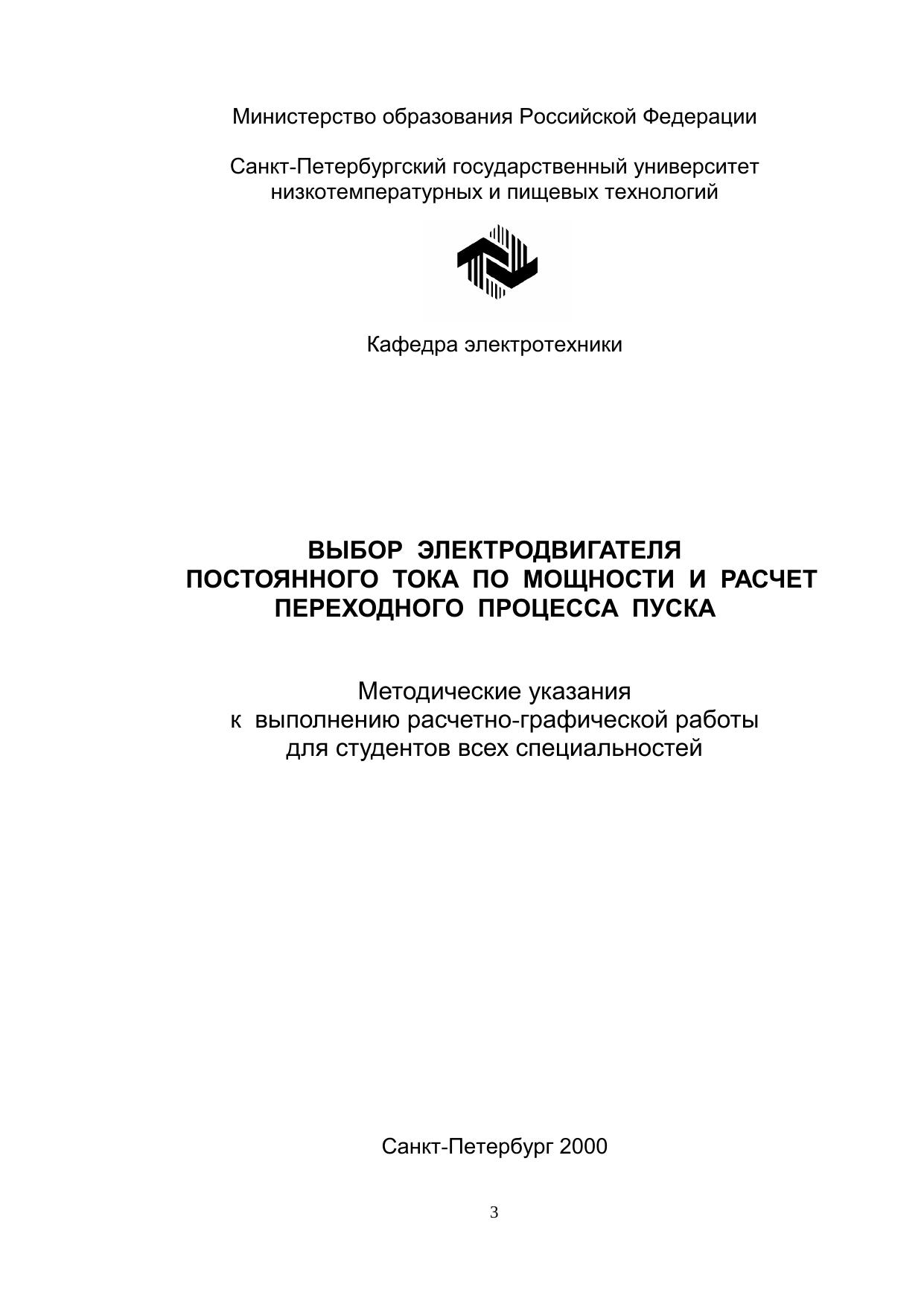 Выбор электродвигателя постоянного тока по мощности и расчет переходного процесса пуска: Метод. указания к выполнению расчетно-графической работы для студентов всех специальностей