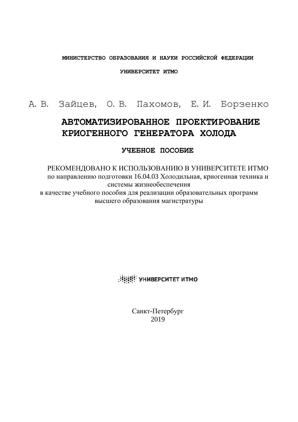 Авторы: Зайцев А. В., Пахомов О. В., Борзенко Е. И.