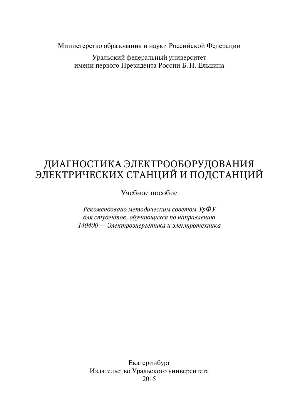 Диагностика электрооборудования электрических станций и подстанций: учебное пособие