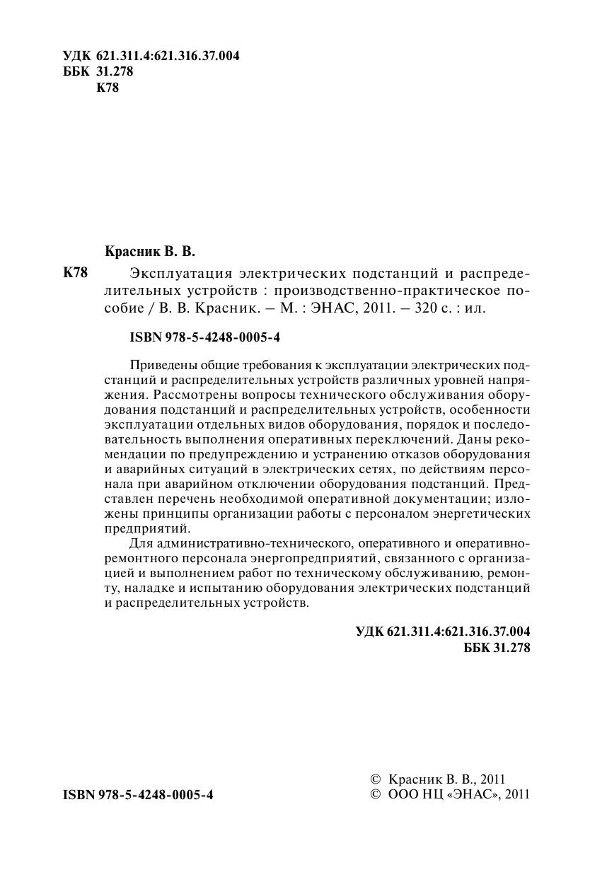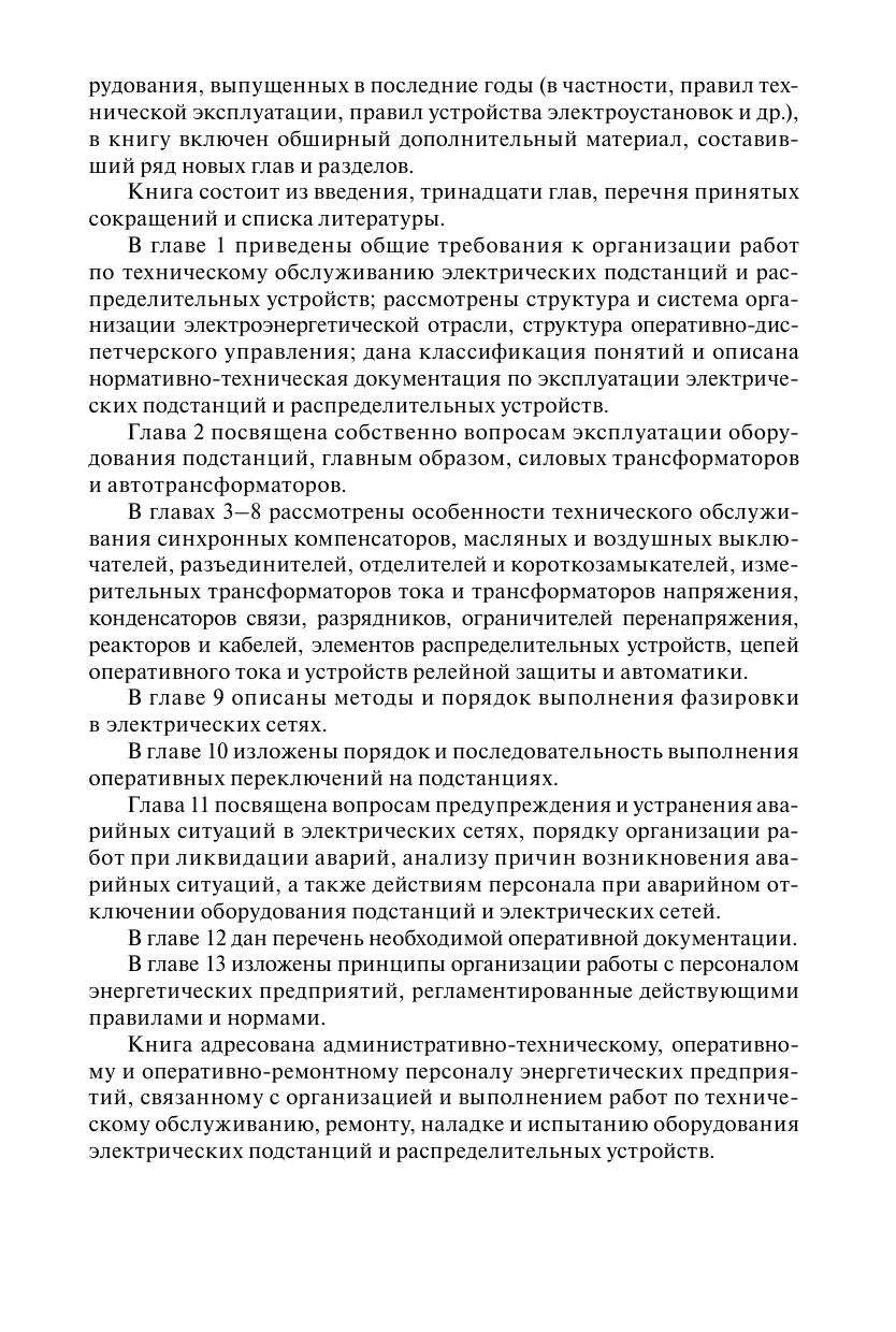 Приведены общие требования к эксплуатации электрических подстанций и распределительных устройств различных уровней напряжения. Рассмотрены вопросы технического обслуживания оборудования подстанций и распределительных устройств, особенности эксплуатации отдельных видов оборудования, порядок и последовательность выполнения оперативных переключений. Даны рекомендации по предупреждению и устранению отказов оборудования и аварийных ситуаций в электрических сетях, по действиям персонала при аварийном отключении оборудования подстанций. Представлен перечень необходимой оперативной документации изложены принципы организации работы с персоналом энергетических предприятий.Для административно-технического, оперативного и оперативно-ремонтного персонала энергопредприятий, связанного с организацией и выполнением работ по техническому обслуживанию, ремонту, наладке и испытанию оборудования электрических подстанций и распределительных устройств.