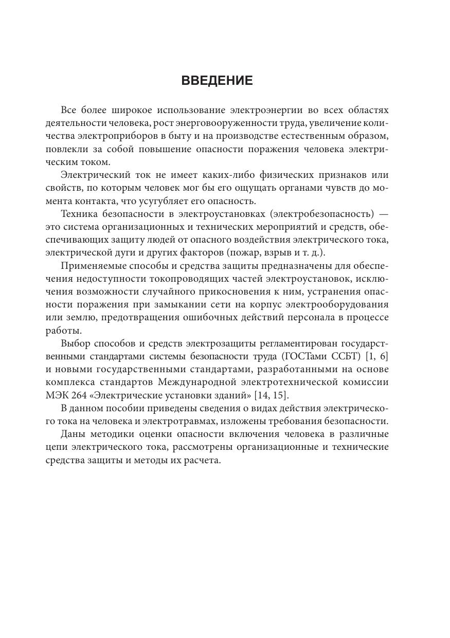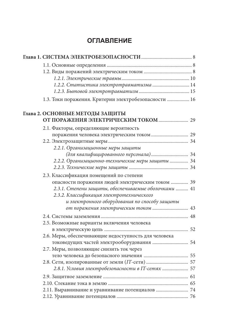 В монографии изложены общие принципы организации системы электробезопасности в электроустановках жилых и общественных зданий, приведены сведения из ряда последних нормативных документов, регламентирующих устройство электроустановок и технические требования к электрозащитным устройствам. Рассмотрены виды поражений электрическим током, критерии электробезопасности, основные электрозащитные устройства, принципы их действия, правила применения, методы контроля и испытания этих устройств, приведены примеры их применения в различных электроустановках. Дополнительно представлены сведения по системам контроля изоляции и молниезащиты электроустановок. Также рассмотрены приемы оказания первой помощи при электропоражении. Книга может быть использована в качестве учебно-справочного пособия при обучении, подготовке и переподготовке электротехнического персонала по теме обеспечения электробезопасности, также книга может быть полезна специалистам-электротехникам при выполнении работ по проектированию, монтажу, наладке и эксплуатации электроустановок жилых, производственных и общественных зданий с применением УЗО. Нормативные материалы, приведенные в работе, должны представлять интерес для работников органов сертификации, испытательных лабораторий, специалистов проектных, электромонтажных, эксплуатационных организаций, работников различных энергетических служб, а также частных лиц, деятельность которых тем или иным образом связана с решением проблем электро- и пожаробезопасности в электроустановках жилых и общественных зданий.