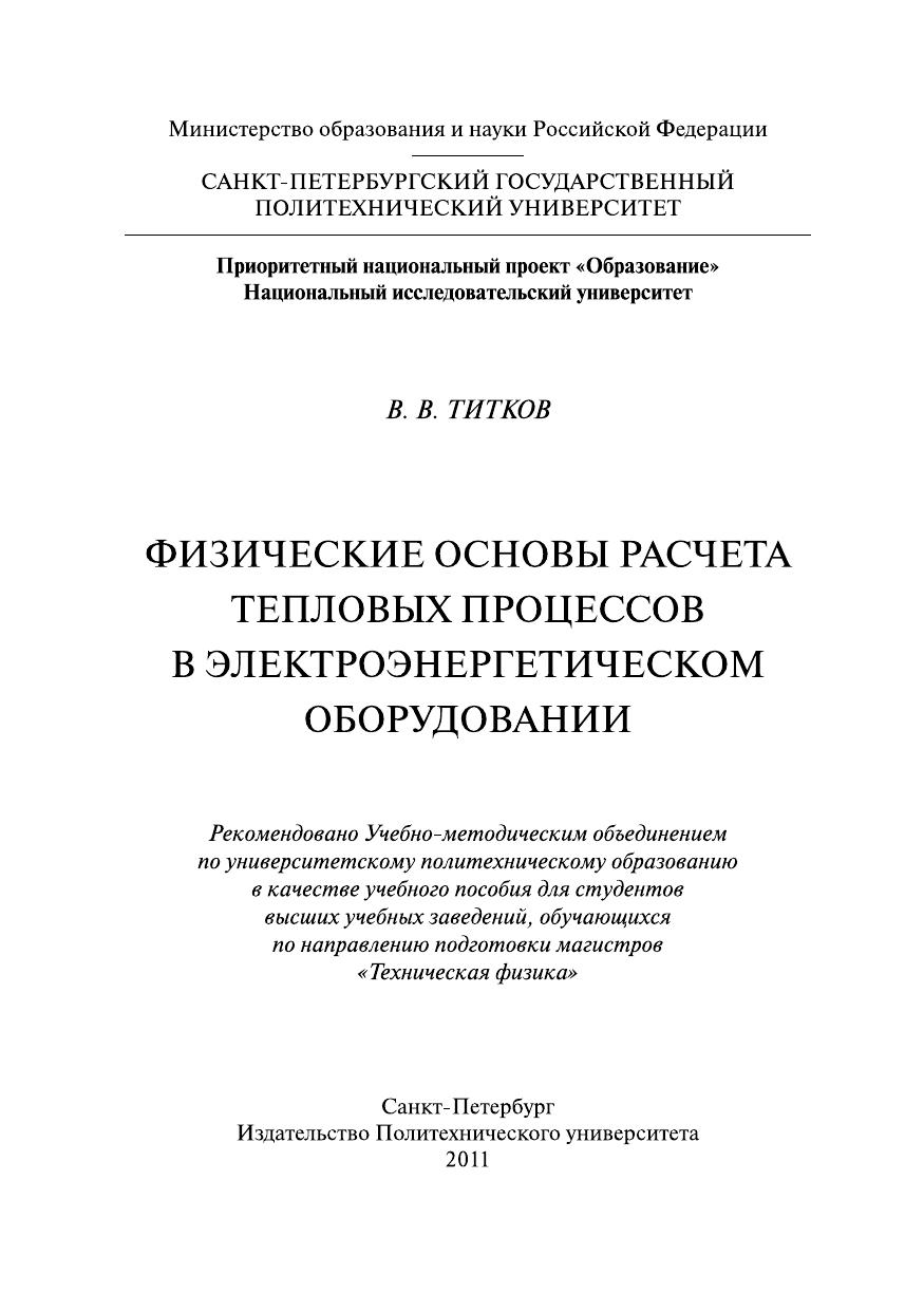Физические основы расчета тепловых процессов в электроэнергетическом оборудовании