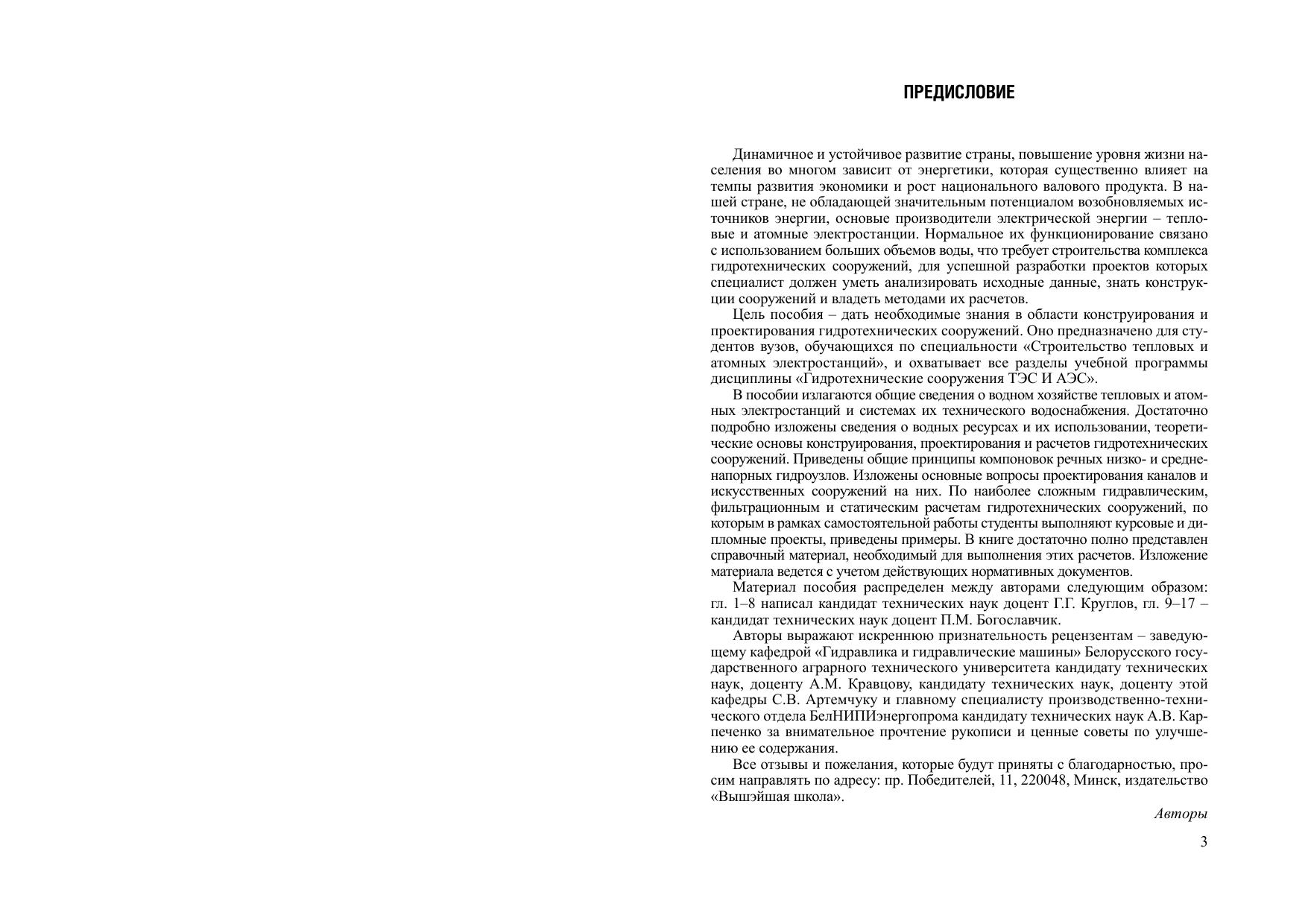 Изложены теоретические основы конструирования, проектирования и расчетов гидротехнических сооружений, предназначенных для водоснабжения тепловых и атомных электростанций. По наиболее сложным расчетам, которые выполняются студентами в курсовых и дипломных проектах, приведены примеры. В приложениях представлен справочный материал, необходимый для этих расчетов. Для студентов вузов, обучающихся по специальности "Строительство тепловых и атомных электростанций".