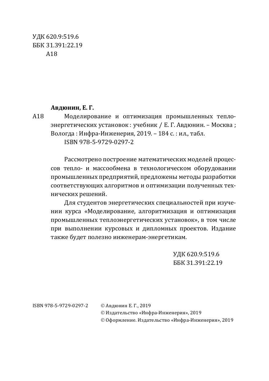 Для студентов энергетических специальностей при изучении курса «Моделирование, алгоритмизация и оптимизация промышленных теплоэнергетических установок», в том числе при выполнении курсовых и дипломных проектов. Издание также будет полезно инженерам-энергетикам.