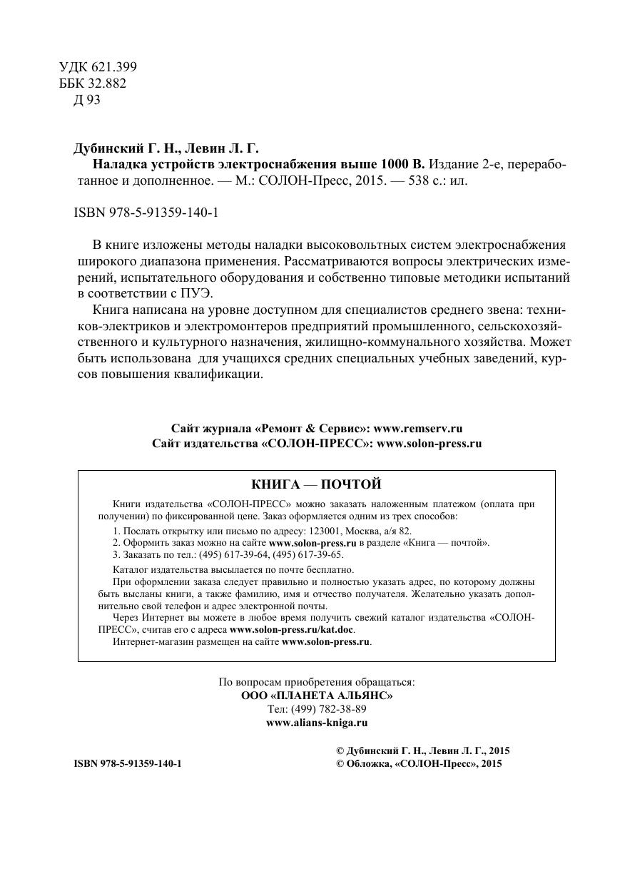 В книге изложены методы наладки высоковольтных систем электроснабжения широкого диапазона применения. Рассматриваются вопросы электрических измерений, испытательного оборудования и собственно типовые методики испытаний в соответствии с ПУЭ. Книга написана на уровне доступном для специалистов среднего звена: техников-электриков и электромонтеров предприятий промышленного, сельскохозяйственного и культурного назначения, жилищно-коммунального хозяйства. Может быть использована для учащихся средних специальных учебных заведений, курсов повышения квалификации.