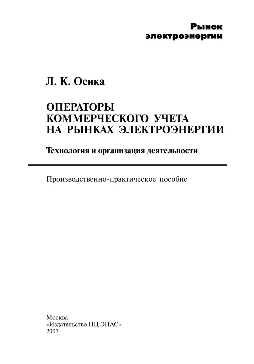Операторы коммерческого учета на рынках электроэнергии.Технология и организация деятельности: Производственно-практическое пособие