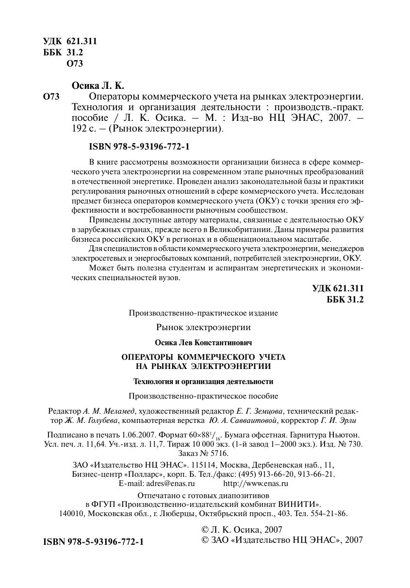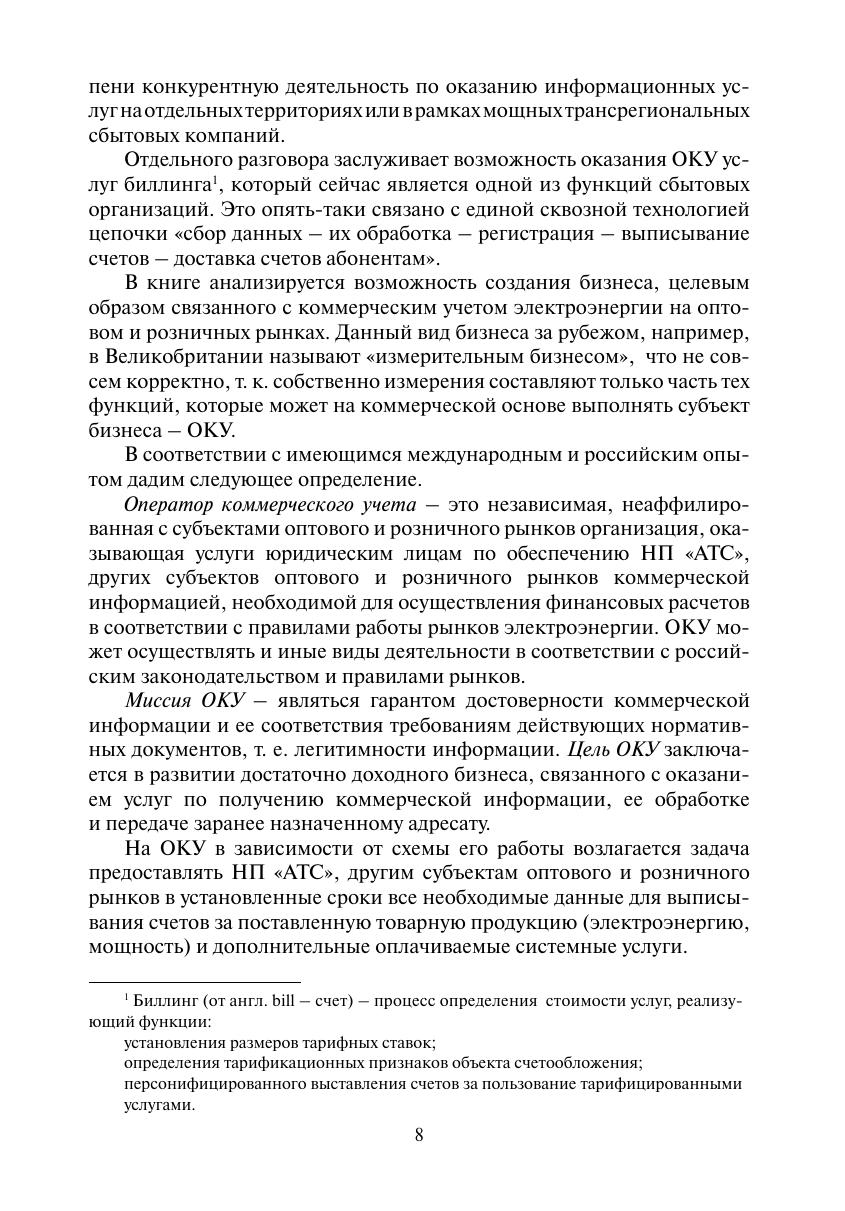 В книге рассмотрены возможности организации бизнеса в сфере коммерческого учета электроэнергии на современном этапе рыночных преобразований в отечественной энергетике.Проведен анализ законодательной базы и практики регулирования рыночных отношений в сфере коммерческого учета. Исследован предмет бизнеса операторов коммерческого учета (ОКУ) с точки зрения его эффективности и востребованности рыночным сообществом. Приведены доступные автору материалы, связанные с деятельностью ОКУ в зарубежных странах, прежде всего в Великобритании. Даны примеры развития бизнеса российских ОКУ в регионах и в общенациональном масштабе. Для специалистов в области коммерческого учета электроэнергии, менеджеров электросетевых и энергосбытовых компаний, потребителей электроэнергии, ОКУ. Может быть полезна студентам и аспирантам энергетических и экономических специальностей вузов.