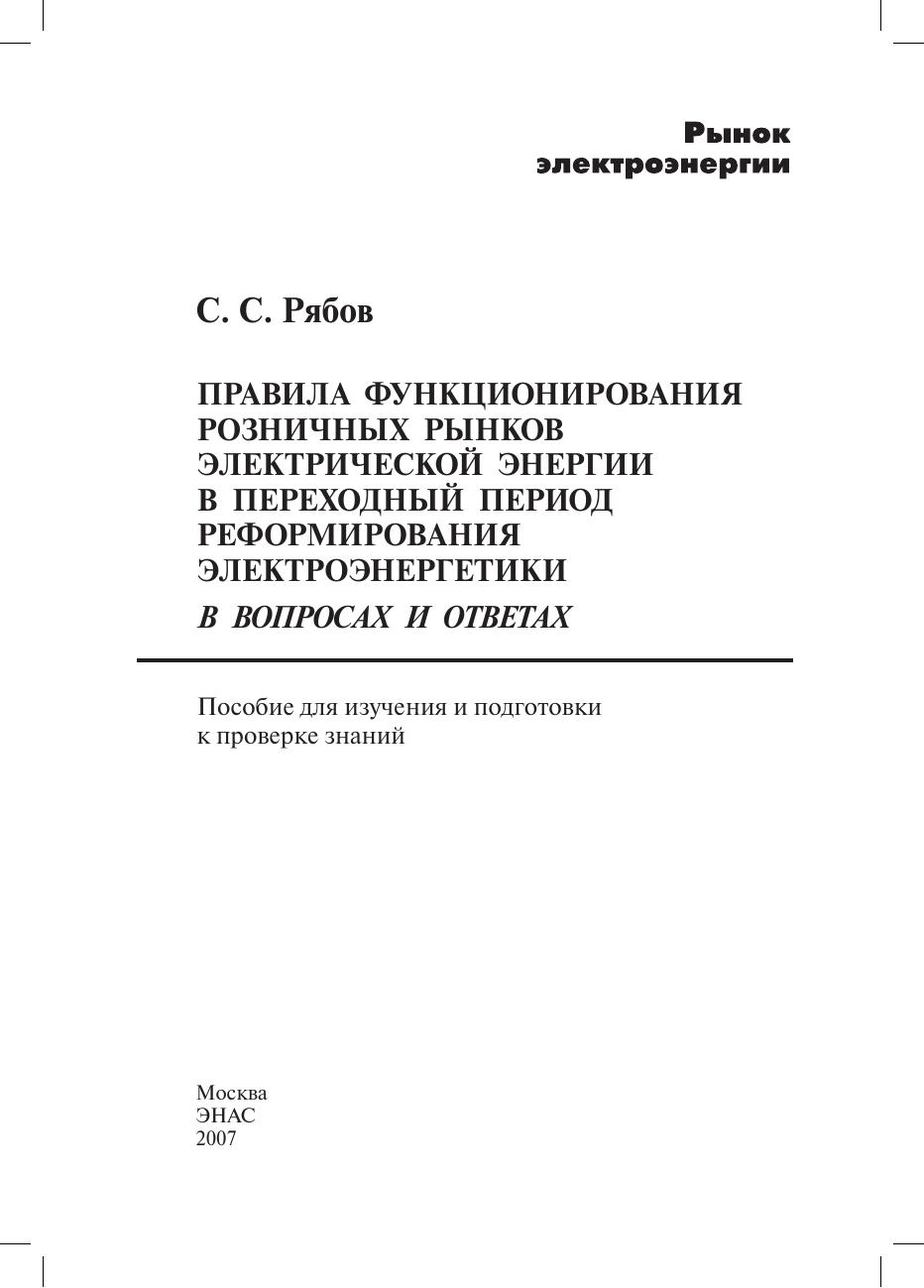 Правила функционирования розничных рынков электрической энергии в переходный период реформирования электроэнергетики в вопросах и ответах: пособие для изучения и подготовки к проверке знаний