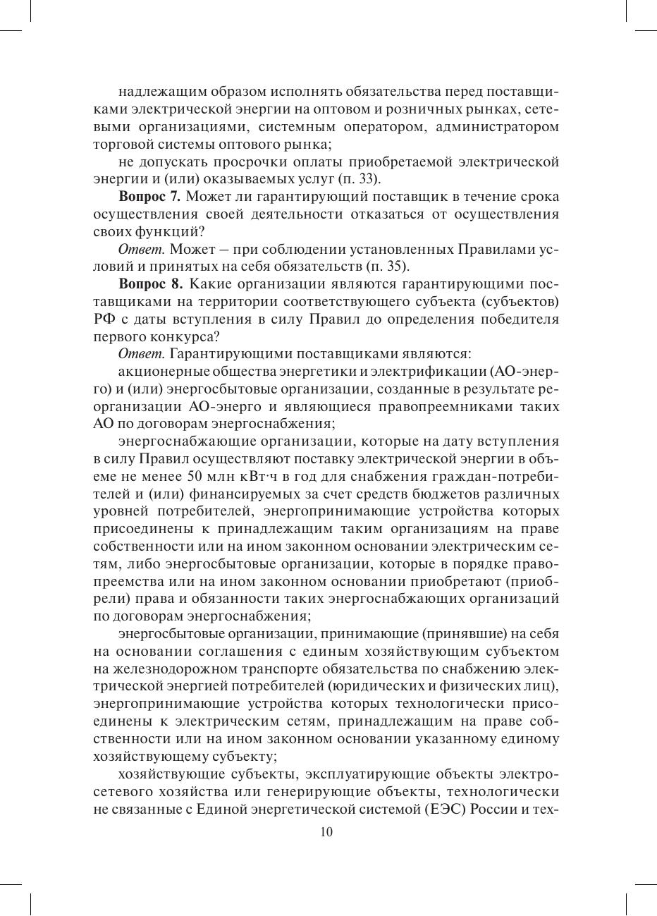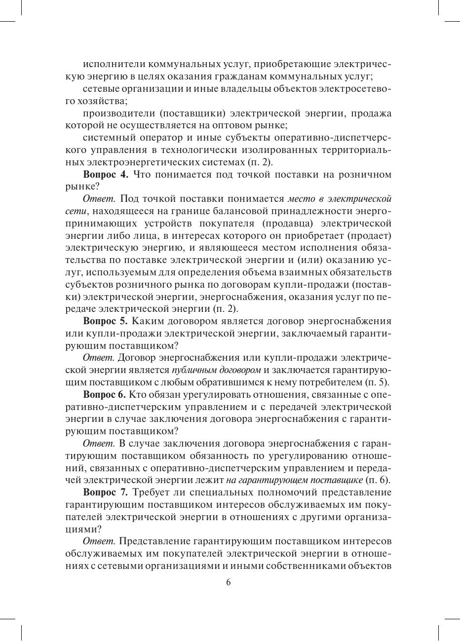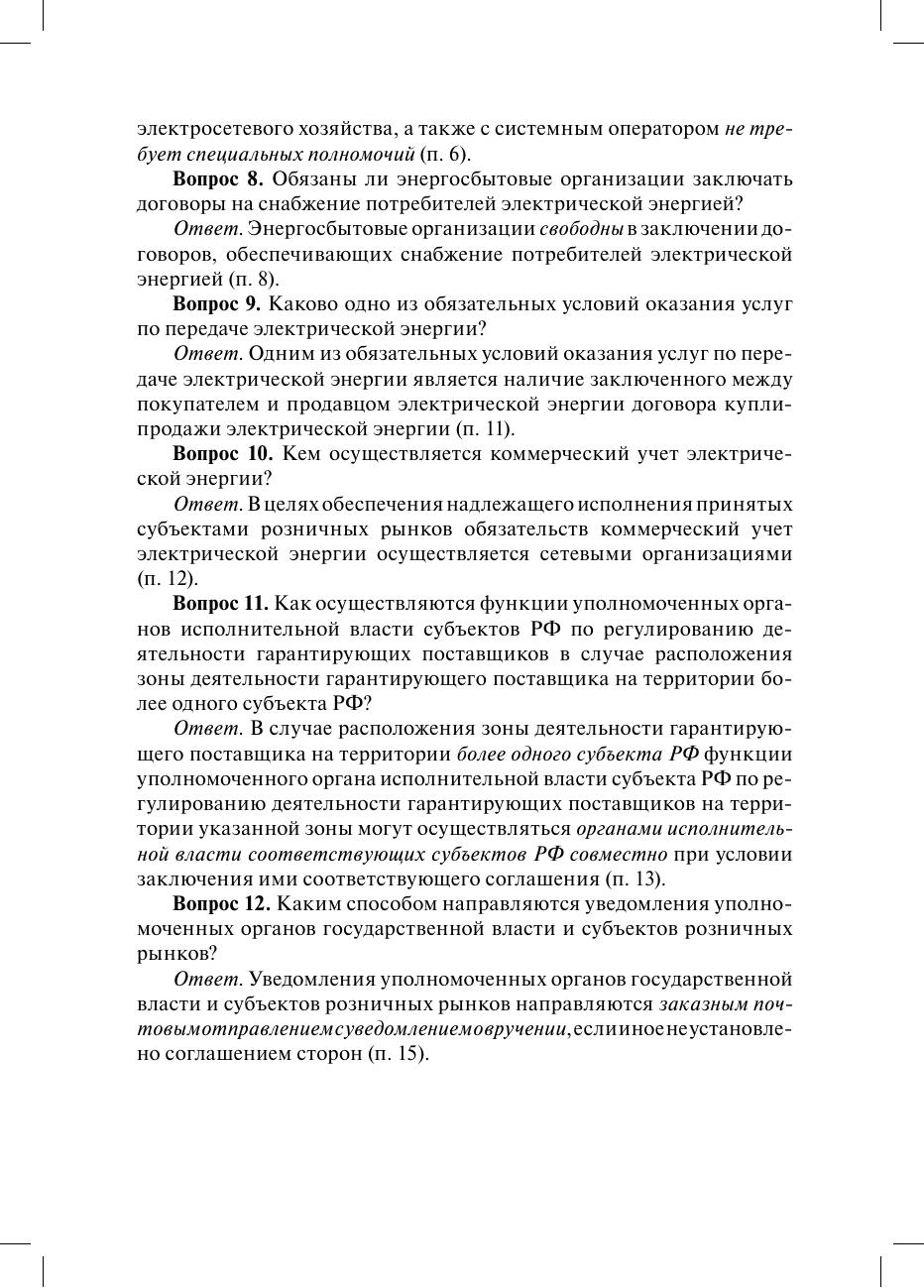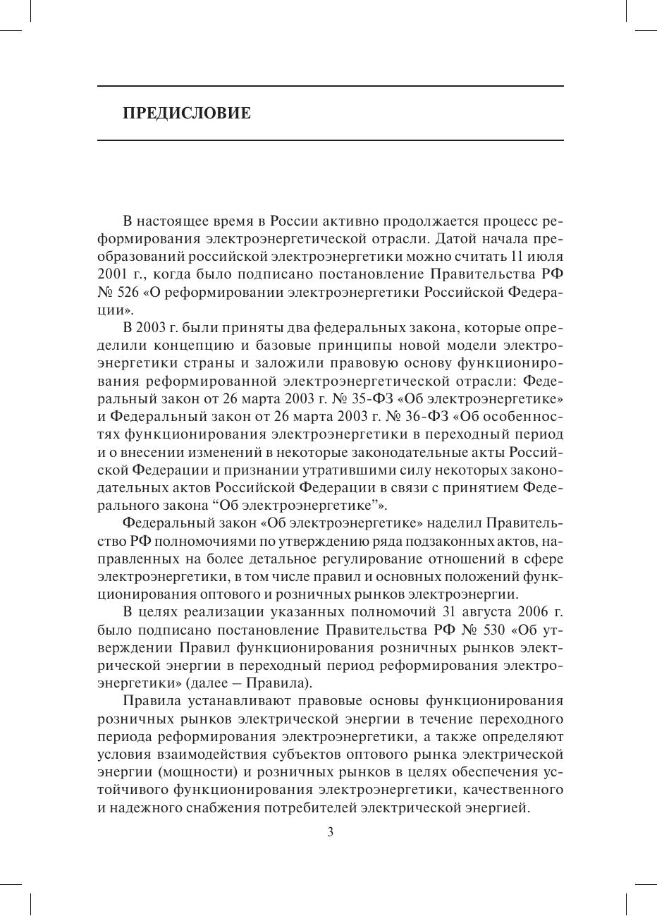 Рассмотрены основные положения "Правил функционирования розничных рынков электрической энергии в переходный период реформирования электроэнергетики", утвержденных постановлением Правительства РФ от 31 августа 2006 г. № 530, в виде вопросов и ответов.Пособие поможет специалистам в изучении Правил при поступлении на работу и при подготовке к проверке профессиональных знаний, а руководителям организаций - в оценке квалификации персонала и принятии кадровых решений.Для специалистов электросетевых и энергосбытовых компаний, операторов коммерческого учета электроэнергии, потребителей электроэнергии. Может быть полезно студентам и аспирантам энергетических и экономических специальностей вузов.