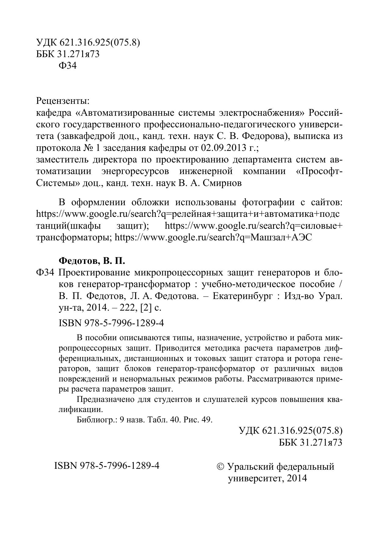В пособии описываются типы, назначение, устройство и работа микропроцессорных защит. Приводится методика расчета параметров дифференциальных, дистанционных и токовых защит статора и ротора генераторов, защит блоков генератор-трансформатор от различных видов повреждений и ненормальных режимов работы. Рассматриваются примеры расчета параметров защит. Предназначено для студентов и слушателей курсов повышения квалификации.