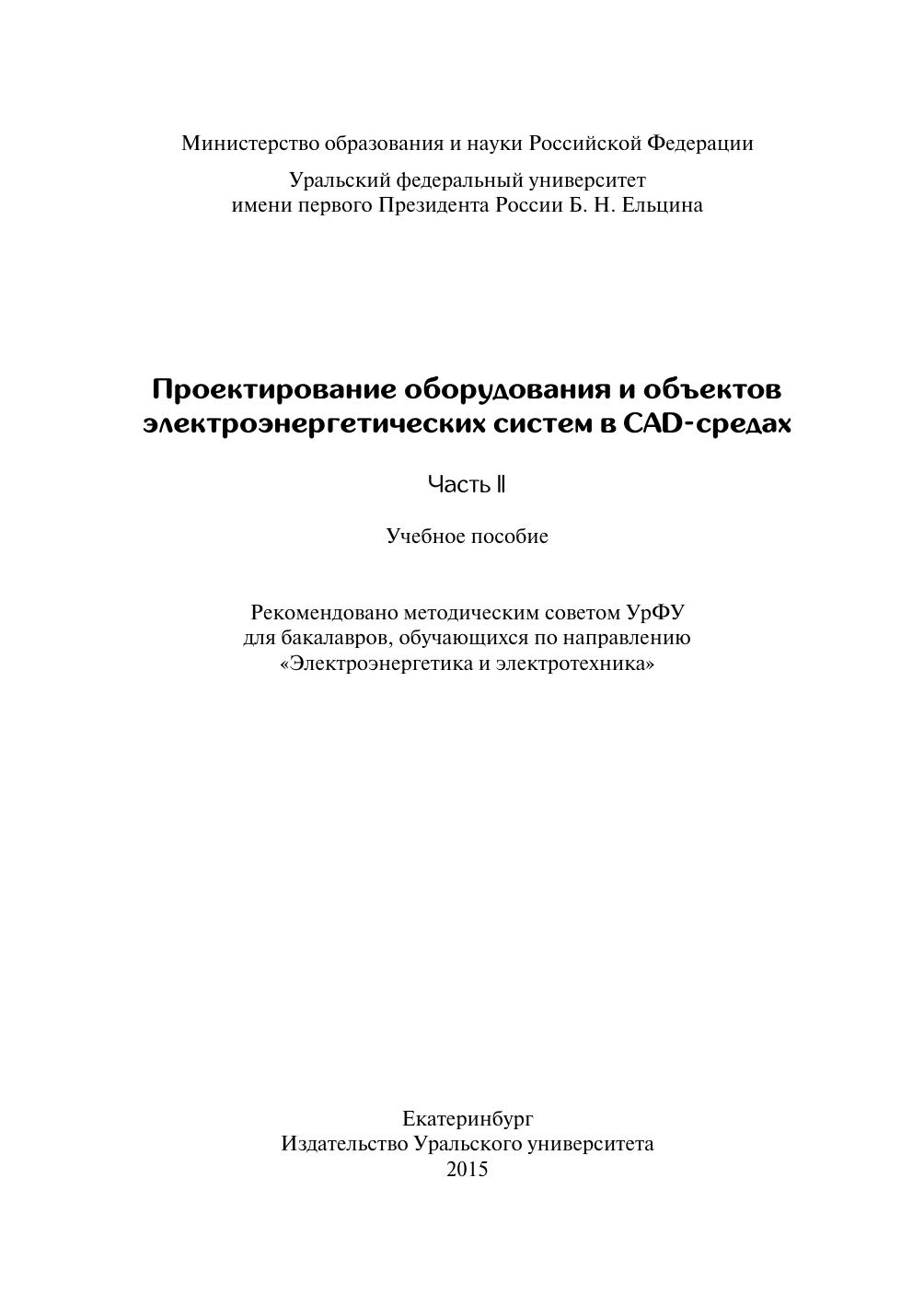 Проектирование оборудования и объектов электроэнергетических систем в CAD-средах Часть II: учебное пособие