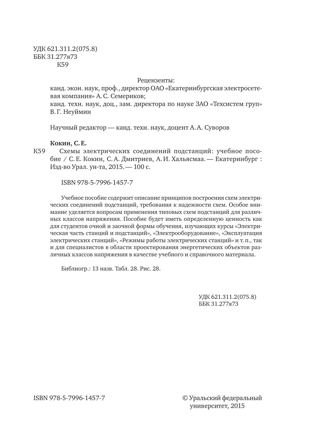 Учебное пособие содержит описание принципов построения схем электрических соединений подстанций, требования к надежности схем. Особое внимание уделяется вопросам применения типовых схем подстанций для различных классов напряжения. Пособие будет иметь определенную ценность как для студентов очной и заочной формы обучения, изучающих курсы «Электрическая часть станций и подстанций», «Электрооборудование», «Эксплуатация электрических станций», «Режимы работы электрических станций» и т. п., так и для специалистов в области проектирования энергетических объектов различных классов напряжения в качестве учебного и справочного материала.