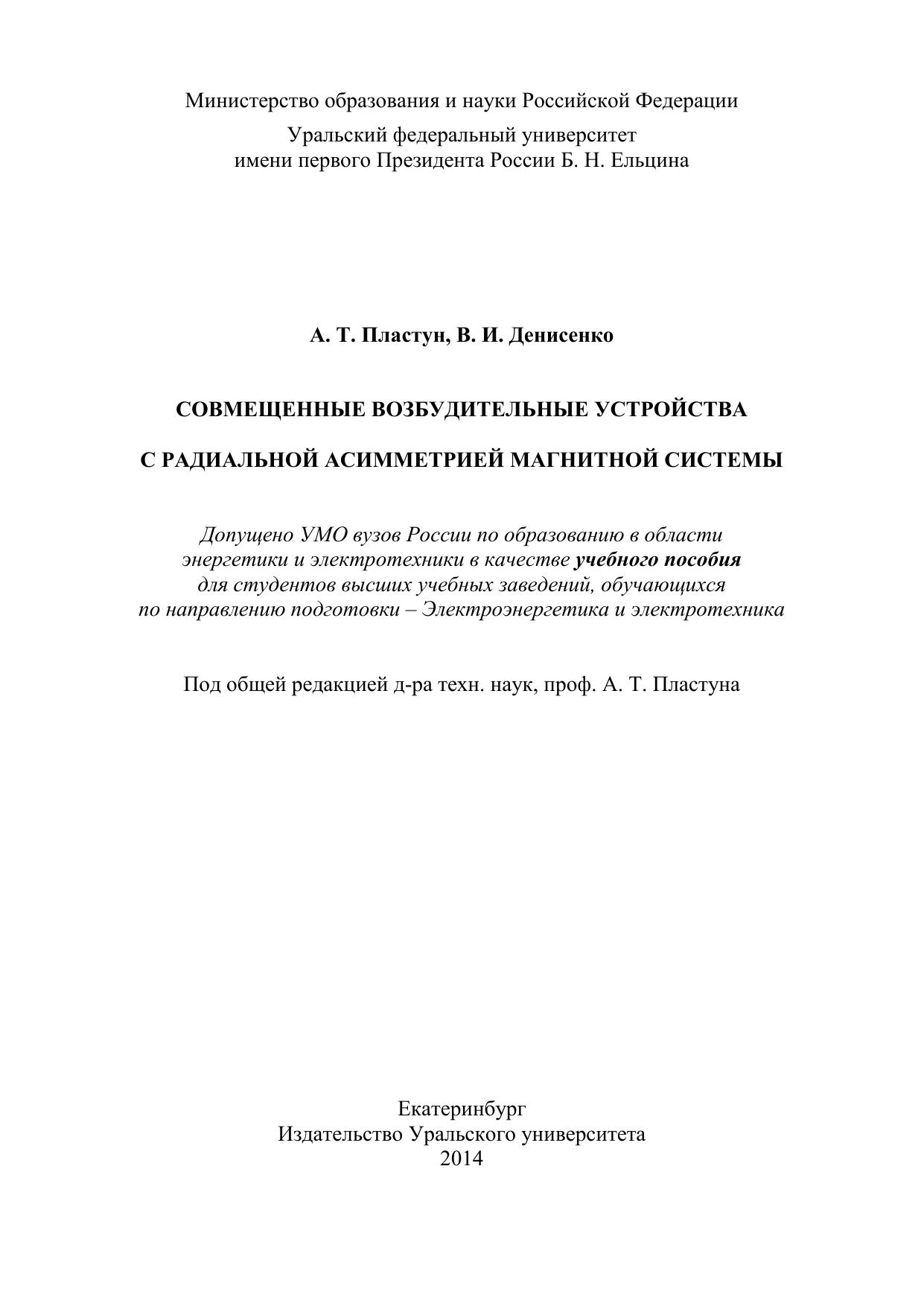 Совмещенные возбудительные устройства с радиальной асимметрией магнитной системы: учебное пособие