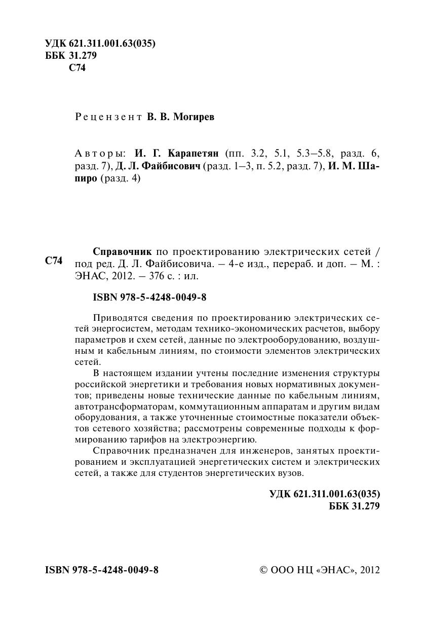 Приводятся сведения по проектированию электрических сетей энергосистем, методам технико-экономических расчетов, выбору параметров и схем сетей, данные по электрооборудованию, воздушным и кабельным линиям и по стоимости элементов электрических сетей.В настоящем издании учтены изменения в структуре российской энергетики и требования новых нормативных документов.Для инженеров, занятых проектированием и эксплуатацией энергетических систем и электрических сетей, а также студентов энергетических вузов.