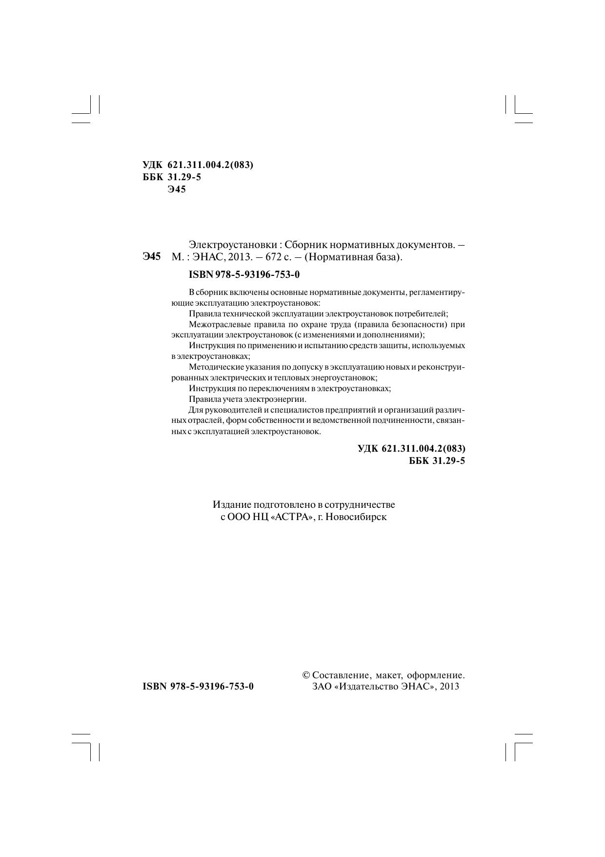 В сборник включены основные нормативные документы, регламентирующие эксплуатацию электроустановок: Правила технической эксплуатации электроустановок потребителей; Межотраслевые правила по охране труда (правила безопасности) при эксплуатации электроустановок (с изменениями и дополнениями); Инструкция по применению и испытанию средств защиты, используемых в электроустановках; Методические указания по допуску в эксплуатацию новых и реконструированных электрических и тепловых энергоустановок; Инструкция по переключениям в электроустановках; Правила учета электроэнергии. Для руководителей и специалистов предприятий и организаций различных отраслей, форм собственности и ведомственной подчиненности, связанных с эксплуатацией электроустановок