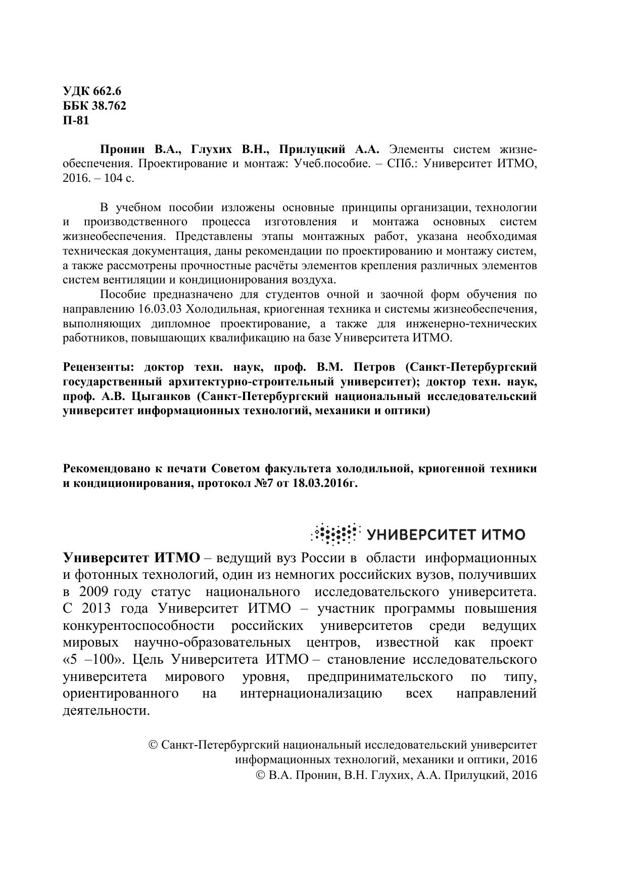 В учебном пособии изложены основные принципы организации, технологии и производственного процесса изготовления и монтажа основных систем жизнеобеспечения. Представлены этапы монтажных работ, указана необходимая техническая документация, даны рекомендации по проектированию и монтажу систем, а также рассмотрены прочностные расчёты элементов крепления различных элементов систем вентиляции и кондиционирования воздуха.