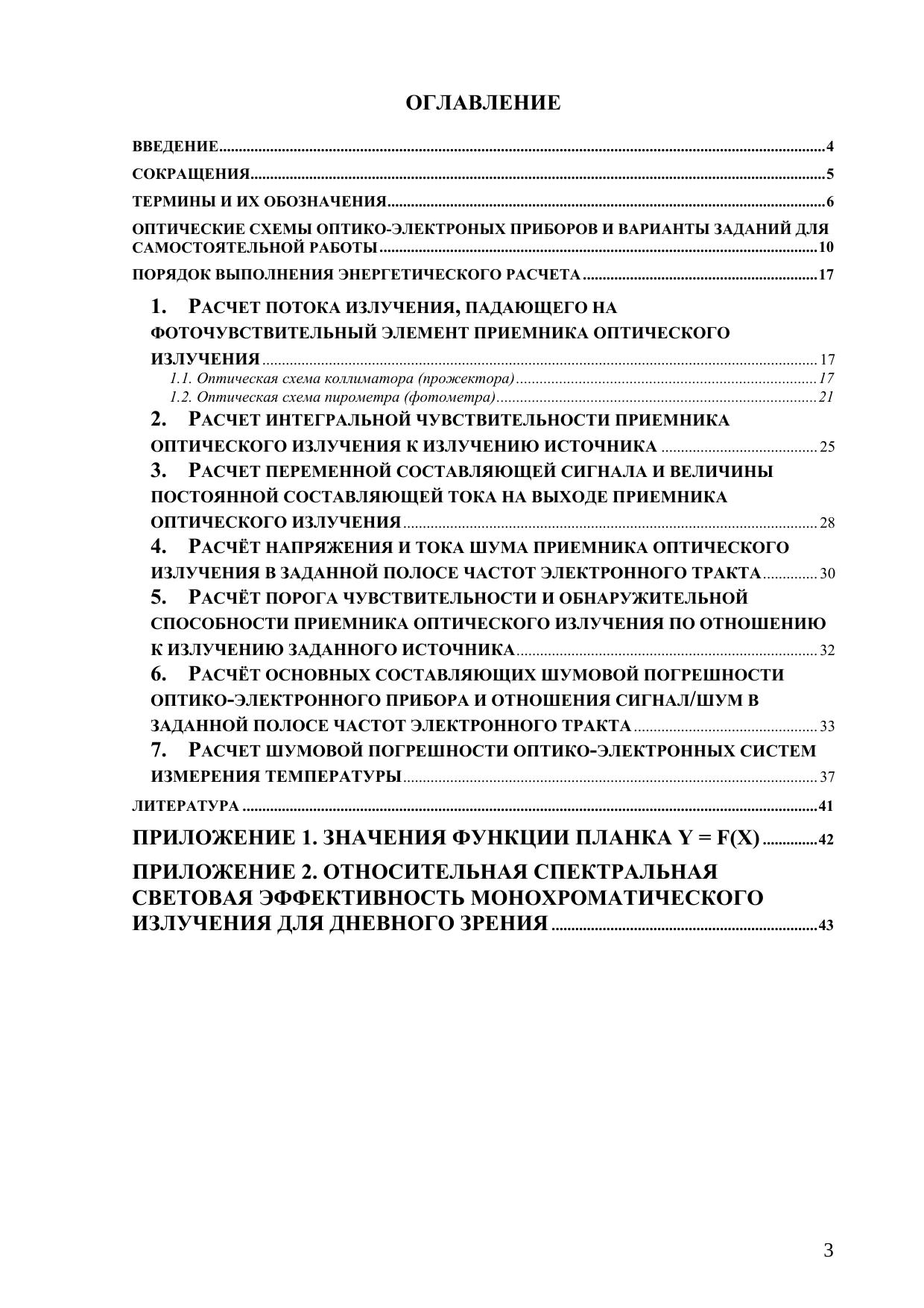 Пособие содержит краткие теоретические сведения и описывает порядок и содержание основных этапов энергетического расчета типовых оптико-электронных приборов, а также набор заданий, которые преподаватели могут использовать для практических занятий и в качестве домашних заданий, а студенты – при самостоятельной работе для подготовки к выполнению курсовых работ и проектов, УИРС, НИРС и ВКР. Содержание пособия соответствует материалам, излагаемым в дисциплинах «Оптические и оптико-электронные приборы и системы», «Источники и приемники излучения», «Измерительные ОЭС». В пособии приведен список литературы для желающих более глубоко ознакомиться с излагаемыми сведениями.